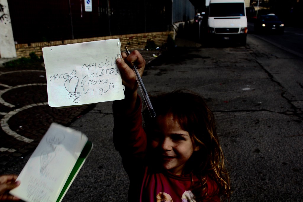 “Mi chiamo Vanessa e ho 11 anni. Vado a scuola a Castel Giubileo. Le mie maestre sono molto brave.” Questo è quello che una ragazzina scrive sul quaderno il tutto contornato da disegni di farfalle, fiori e tanti cuoricini. Anche Simona che ha 5 anni, la più piccolina del gruppo, scrive correttamente il suo nome incorniciato da un cuore, lo mostra con grande soddisfazione e con un sorriso disarmante.