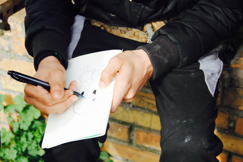 bambini 2Poco a poco iniziano a parlare di scuola, i loro visi si illuminano. Tutti frequentano le scuole dei quartieri limitrofi Fidene e Castel Giubileo. Sono contenti di andare a scuola, nonostante le difficoltà. Ad un certo punto qualcuno tira fuori un quaderno ed una penna. A rotazione, con quella spontaneità di cui solo i bambini sono capaci, prendono lo stesso quaderno e danno spazio alla loro creatività con tanti disegni e scritte
