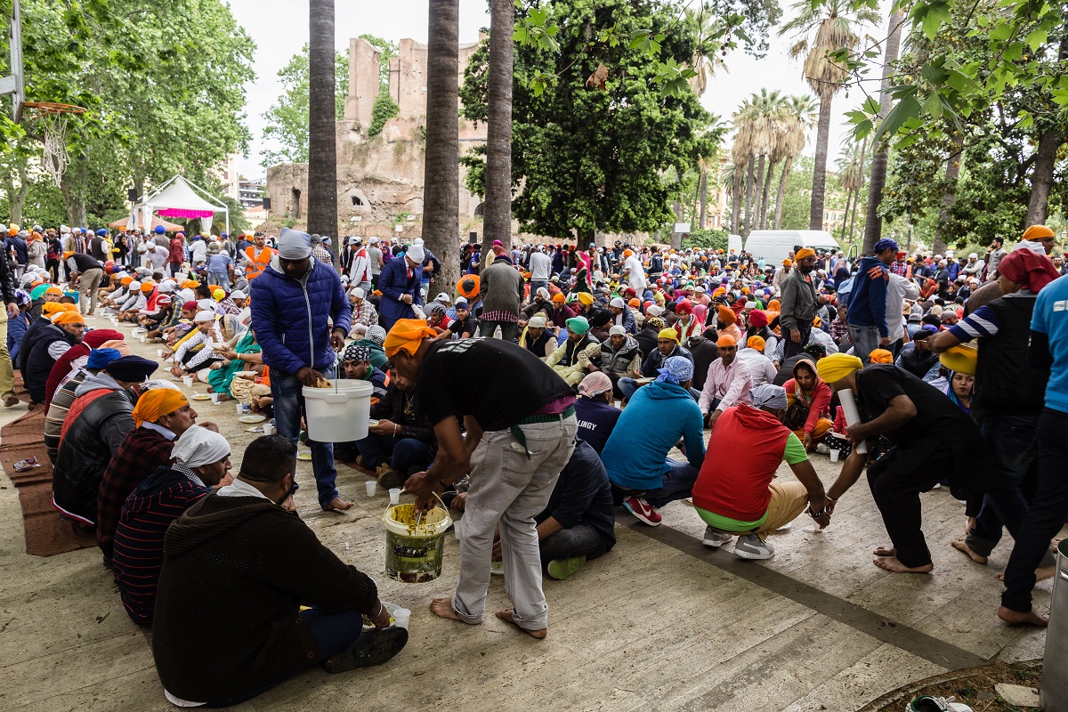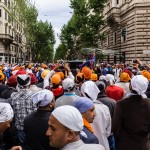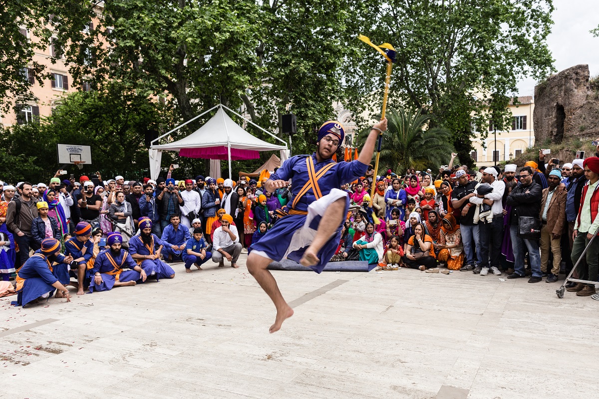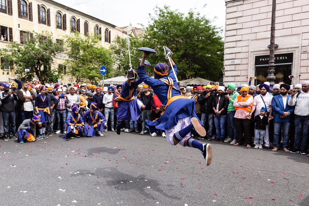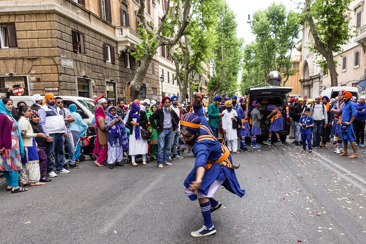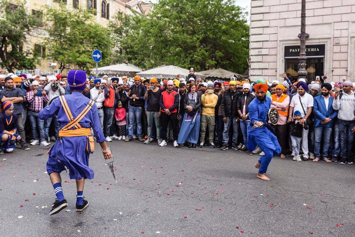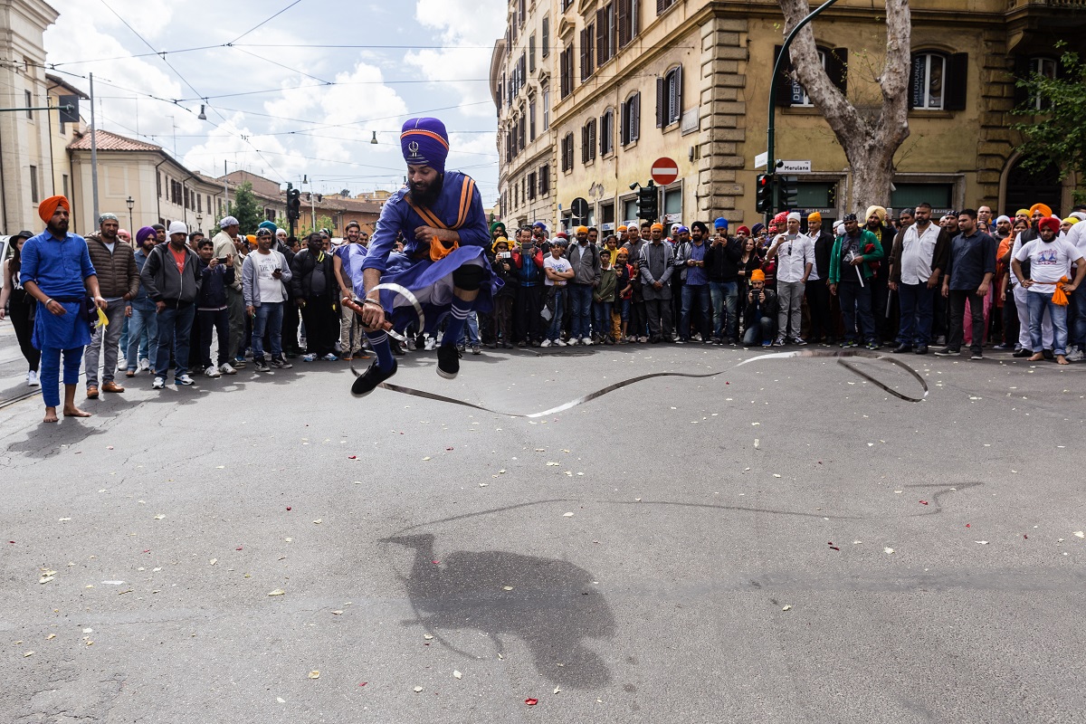 Foto e testo di Adamo BanelliNagar Kirtan (in Punjabi: ਨਗਰ ਕੀਰਤਨ) è una celebrazione tradizionale Sikh che si svolge solitamente nel mese di Visakhi, il mese del raccolto nella regione del Punjab.La comunità Sikh ha celebrato anche quest’anno la ricorrenza riunendosi a Roma il 24 aprile nella Piazza Vittorio Emanuele, nel cuore del quartiere Esquilino; dopo il pasto del mattino, i Panj Piare, i 5 amati dal guru, hanno guidato la processione attraverso il quartiere seguiti dal Guru Granth Sahib (Punjabi (Gurmukhi): ਗੁਰੂ ਗ੍ਰੰਥ ਸਾਹਿਬ) il più importante scritto religioso della religione Sikh) ed accompagnati da canti sacri ed esibizioni di arti marziali tradizionali.La processione si è conclusa nel pomeriggio con le Ardas (preghiere) e dalla distribuzione di cibo per i fedeli.