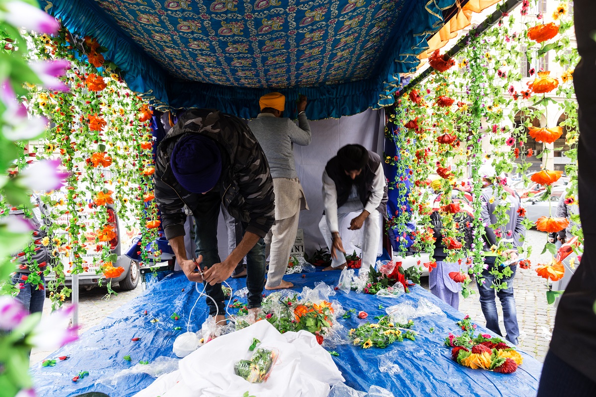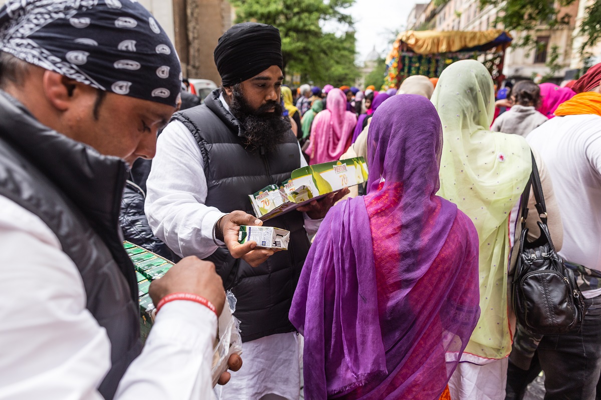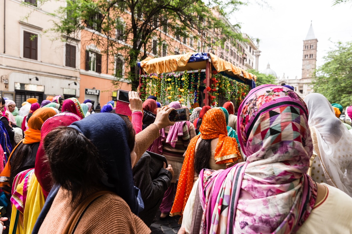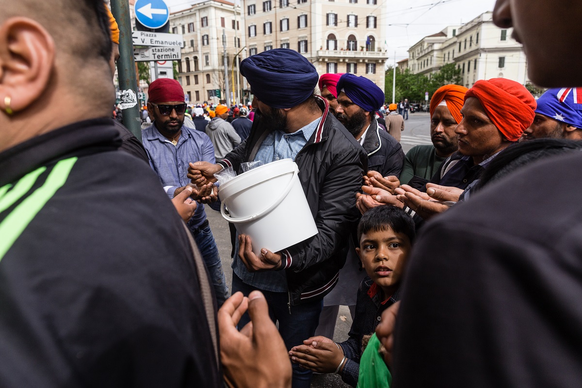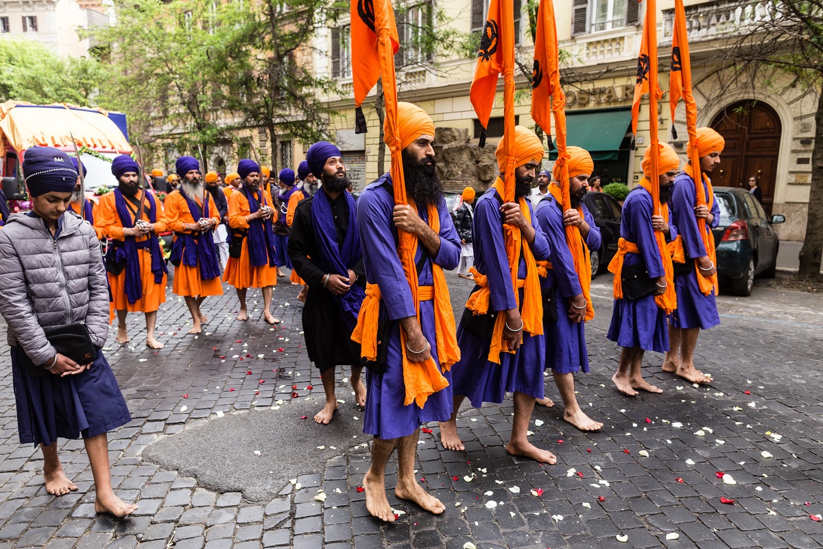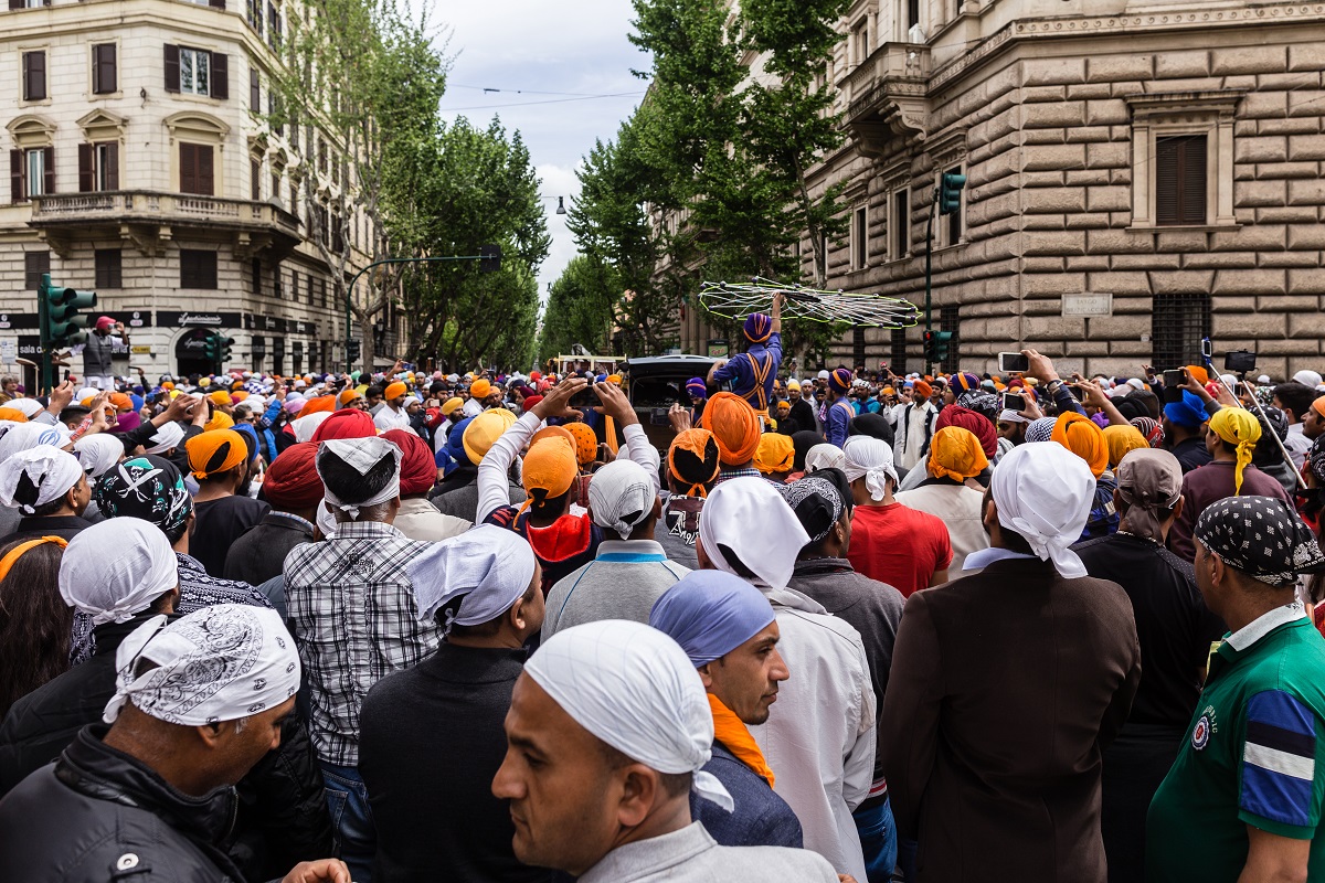 Foto e testo di Adamo BanelliNagar Kirtan (in Punjabi: ਨਗਰ ਕੀਰਤਨ) è una celebrazione tradizionale Sikh che si svolge solitamente nel mese di Visakhi, il mese del raccolto nella regione del Punjab.La comunità Sikh ha celebrato anche quest’anno la ricorrenza riunendosi a Roma il 24 aprile nella Piazza Vittorio Emanuele, nel cuore del quartiere Esquilino; dopo il pasto del mattino, i Panj Piare, i 5 amati dal guru, hanno guidato la processione attraverso il quartiere seguiti dal Guru Granth Sahib (Punjabi (Gurmukhi): ਗੁਰੂ ਗ੍ਰੰਥ ਸਾਹਿਬ) il più importante scritto religioso della religione Sikh) ed accompagnati da canti sacri ed esibizioni di arti marziali tradizionali.La processione si è conclusa nel pomeriggio con le Ardas (preghiere) e dalla distribuzione di cibo per i fedeli.