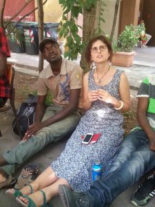 Khalif, il sarto del Cas di Marcellina con Giulia, la maestra