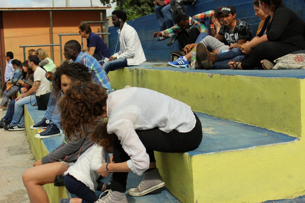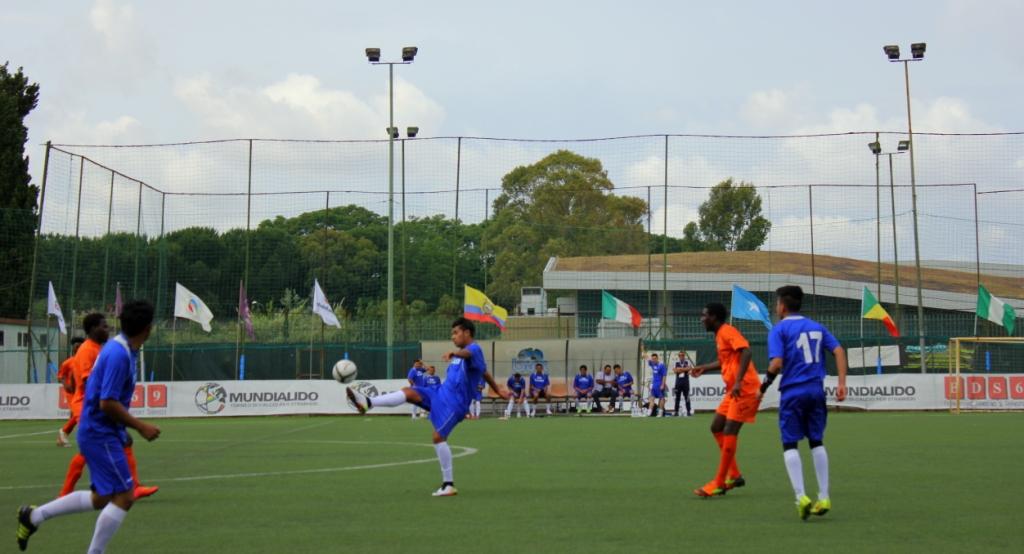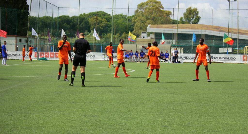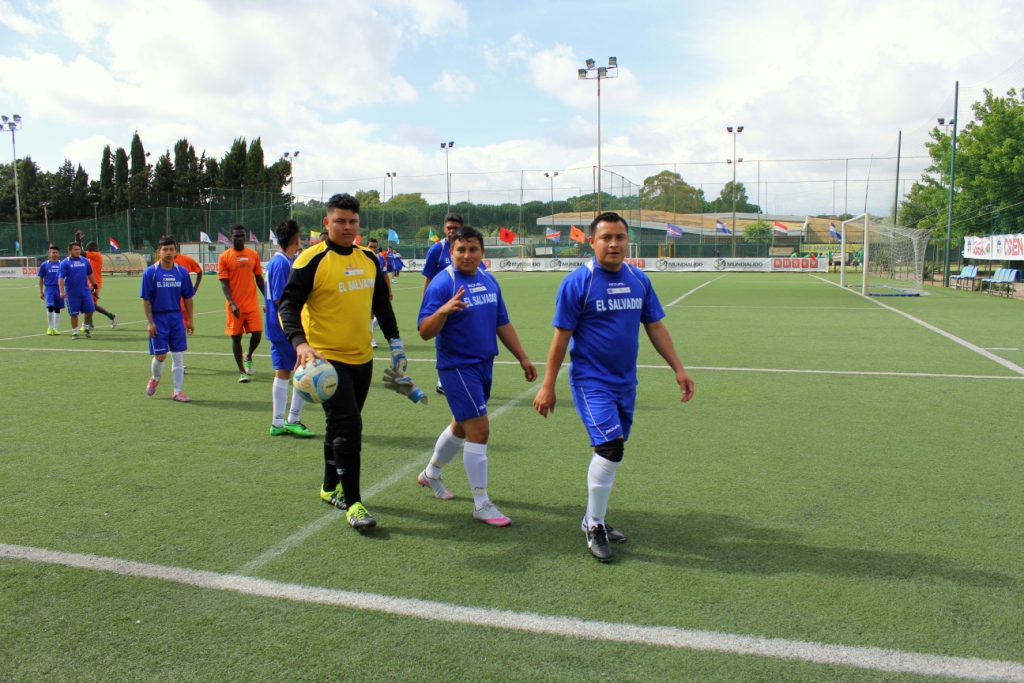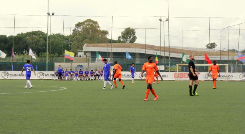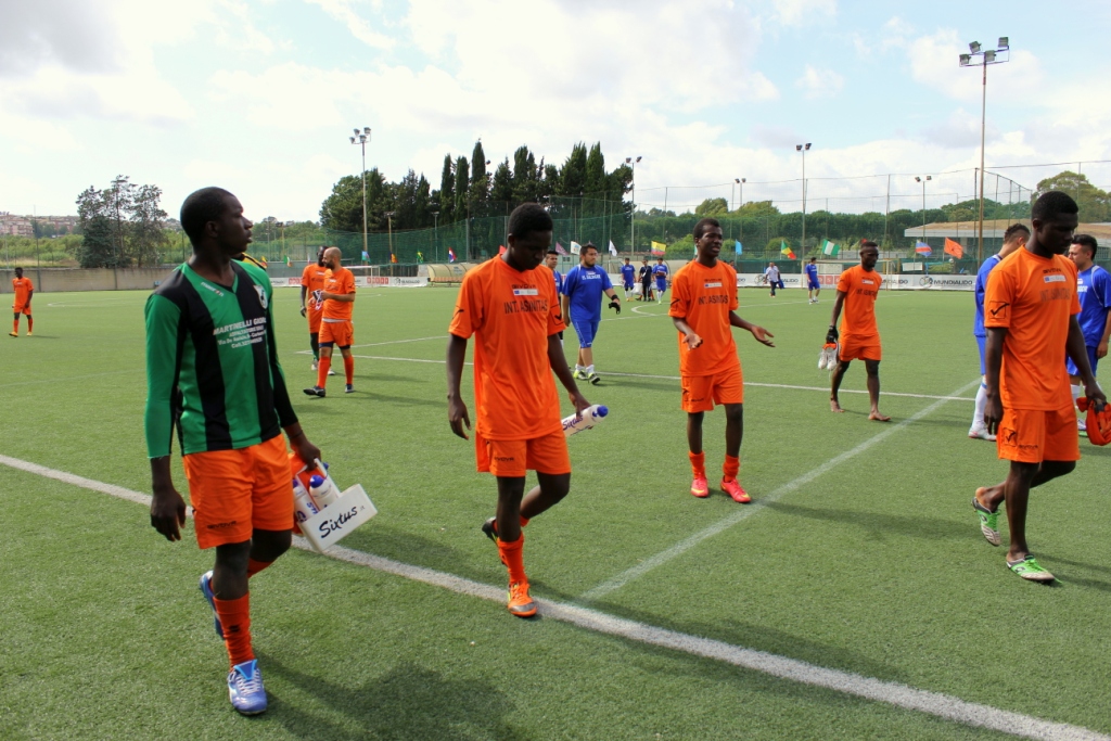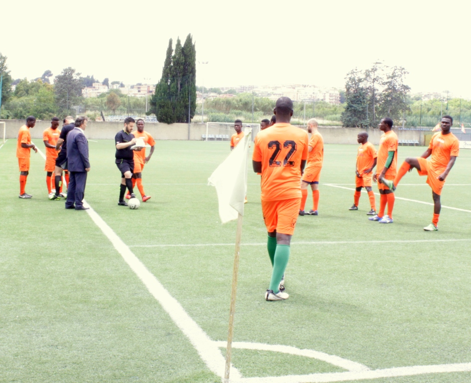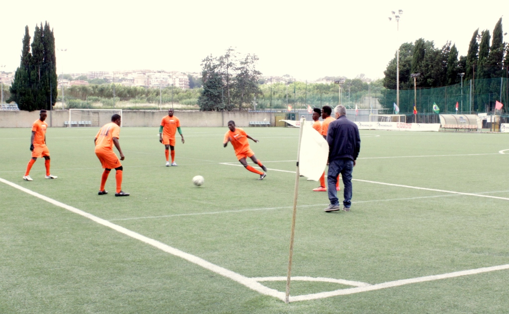Roma, 2 giugno, festa della Repubblica. Dalle 15 alle 17 presso l’impianto “Cotral” di Via della Vasca Navale, nell’ambito del Mundialido 2016 scendono in campo la squadra che ha formato Asinitas composta da ragazzi richiedenti asilo di vari CDA romani, provenienti da Senegal, Mali, Gambia, Costa d’avorio, Guinea e Nigeria che sfida i ragazzi della comunità salvadoregna di Roma – El Salvador. Sembra che sia arrivata tutta la comunità a sostenerli: mogli, amici e bambini. Il tifo è ben organizzato: sventolano le bandiere, assordano trombe e strumenti vari; l’atmosfera è carica di allegria ed eccitazione. Piuttosto sguarnita la tribuna dei tifosi di Asinitas, per lo più ci sono educatori ed insegnanti, che compensano lo svantaggio gridando slogan e incitando al meglio la squadra.Prima di entrare in campo, gli allenatori si prodigano negli ultimi consigli, ravvivano lo spirito di squadra, i ragazzi ascoltano attentamente e si scaldano. Colpisce la concentrazione dei giocatori, il momento per loro è solenne. L’ultima indicazione e via, carichi e pronti a vincere; l’immancabile foto alle squadre, il fischio dell’arbitro… e comincia la partita.Al 15° minuto arriva il primo goal del Salvador; la tribuna esulta, la squadra è decisamente forte. Pochi sono i momenti in cui i loro giocatori perdono la palla. Il secondo goal arriva poco dopo, al 25° minuto, e poi il terzo al 36° minuto. La fine del primo tempo è vicina quando El Salvador segna il 4°gol. Il morale della squadra è alle stelle, quello di Asinitas vacilla.Durante l’intervallo gli educatori ce la mettono tutta per aumentare la loro grinta. Nel secondo tempo si difendono meglio: contengono il passivo del primo tempo non incassando nessuna rete e arrivano alla fine tutto sommato con onore. Malgrado la sconfitta, i volti sono sorridenti: anche partecipare è stata una bella esperienza.