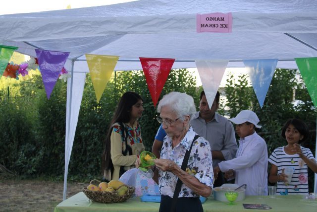 Rajad Mamud è allo stand dell’Achar Chutney ed è interprete e traduttore presso l’ambasciata, a Roma da 35 anni, ha l’accento e lo humour di un vero romano, spiega le cose che offre: due salse con il mango e il peperoncino da spalmare sui cracker e un’insalata di ceci e peperoni servita su nuvolette di riso. “Il mango pakistano non è molto conosciuto in Italia vengono di solito importanti manghi da altre parti del mondo ma il nostro è davvero molto morbido”. Lo stand del mango pie, torta, e quello del mango milk shake sono seguiti da quello del mango lassi con yogurt, acqua e un pizzico di zucchero e del mango ice cream. Mango per tutti i gusti e nelle combinazioni più diverse. Sul prato un centinaio di persone pakistane e italiane ridono e parlano amabilmente tra una degustazione e l’altra, segno che la conoscenza dei prodotti tipici può aprire la strada all’integrazione.