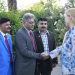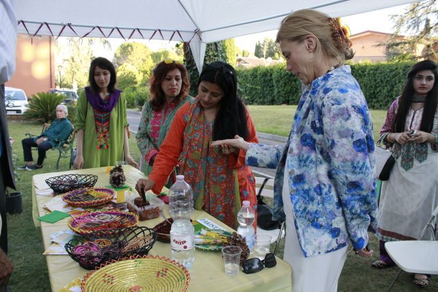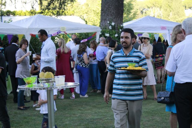 Una porta di ferro nera introduce in un grande giardino, è l’ambasciata del Pakistan in via della Camilluccia 682, che festeggia oggi il suo frutto nazionale: il mango.Ad accogliere gli invitati Stefania Testa, della sezione consolare, in vestito tipico. Elisabetta Belloni, segretario generale del MAE, inaugura l’evento di dialogo tra i due paesi con il taglio di un nastro giallo con forbici d’oro e inizia il suo giro degli stand, accompagnata dall’ambasciatore Nadeem Riyaz e da Sara Drupi dell’ufficio consolare.C’è uno stand del bangles hennee, dove donne pakistane realizzano decorazioni sulle mani con legni intarsiati intinti in una salsa ottenuta con il miele e regalano braccialetti tipici, i bangles. Nello stand successivo, Pakistan Handcraft, sono esposti diversi lavori artigianali insieme a stoffe e vestiti.Ma il vero padrone della giornata è il re della frutta esotica: il mango, giallo, disposto in vasi nei tavolini sparsi sul prato e negli stand di degustazione.Aslam Pakhali, della FA International, ente che si occupa di esportazioni e importazioni di frutta e verdura del Pakistan, spiega che il Paese produce in media 1,6-1,8 milioni di tonnellate di cui tra le 100 e le 120 mila vengono esportate in tutto il mondo dall’Australia al Benin. “È prodotto soprattutto nella regione del Punjab e del Sindh. Da qui viene il Sindhri che è una varietà unica, senza fibra”.L’idea dell’evento è del nuovo ambasciatore come spinta per una reciproca integrazione con l’Italia, e non solo una relazione di tipo economico, di importazione. “Molte collaborazioni di tipo politico e sociale sono già attive, profonde a partire dalla fine degli anni ’40”.L’evento è stato riproposto in versione ridotta a Piazza del Popolo il 13 luglio.