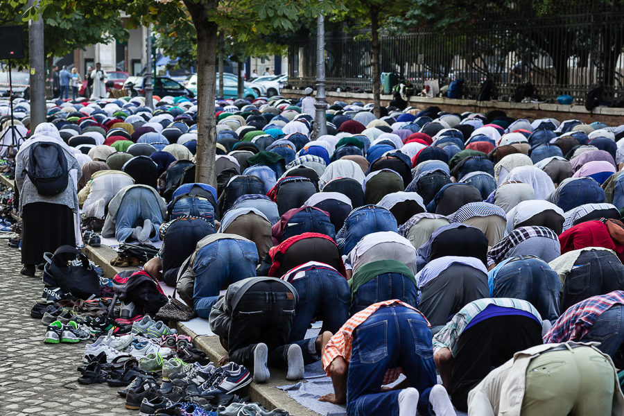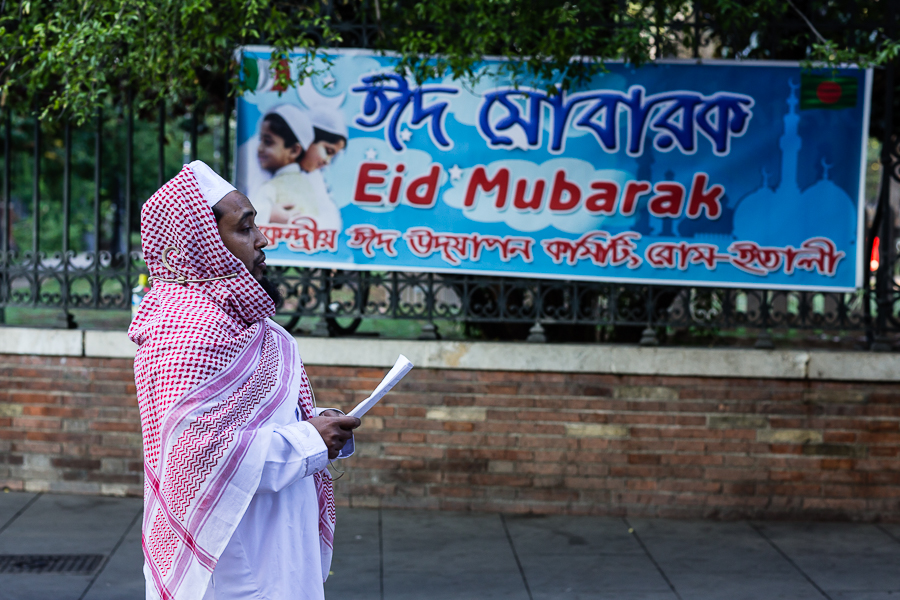 L’Eid al Adha è la Festa del Sacrificio: è la ricorrenza più importante per i fedeli musulmani, che ricordando l’episodio del sacrificio compiuto da Abramo, attraverso la cerimonia e la preghiera si dicono disposti a rinnovare in prima persona la propria fedeltà a Dio. A Roma sono state moltissime le comunità di fedeli riunite nelle moschee e nelle piazze per celebrare l’evento. All’Esquilino, la comunità bangladese si è ritrovata nelle strade limitrofe a Piazza Vittorio Emanuele per pregare insieme nella mattinata del 12 settembre. Molte moschee, nonostante il maltempo, hanno aperto le porte già dal giorno prima, organizzando preghiere e distribuendo messaggi di pace.