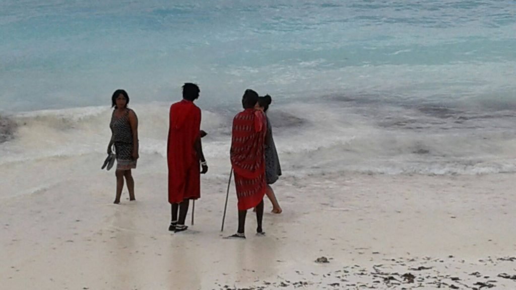 Per ora parla solo swahili e qualche parola di inglese, le due ragazze lo hanno preso a cuore. Alle sei l’appuntamento sulla spiaggia con le Mwalimu, le maestre, è diventato un’abitudine: cominciano con i saluti, l’alfabeto, i verbi, le emozioni che scrivono su un quadernino, con la traduzione in swahili vicino. Intanto la classe cresce, molti altri curiosi prendono parte alla lezione asserragliandosi in un cerchio intorno a loro: “Ci sono le musungu, le bianche, che insegnano italiano al masai venite…”.