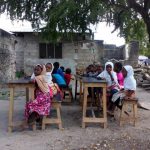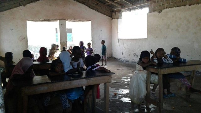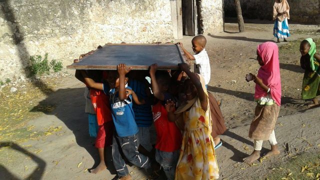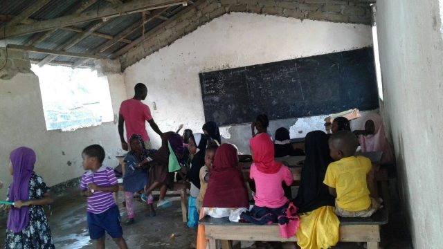 “Hello teacher, how are you?” – dicono in coro a Latifa, una delle insegnanti della scuola –“I am good, thank you”- risponde mentre disegna con un gessetto una scuola. “School, this is a school” e i bambini ripetono a comando come un esercito. La concentrazione è inspiegabilmente alta anche se a volte è interrotta da qualche quaderno rubato o qualche matita infilzata nel fianco. A ricreazione alcuni corrono al negozio per comprarsi la canna da zucchero: è una scuola aperta in tutti i sensi, i bambini si muovono continuamente e giocano con quello che hanno, il bagno non c’è e la fontanella è una vasca di acqua stagnante, da cui attingono con un bastone a cui è saldato un secchiello di plastica. Quello che fanno è kidogo kidogo, poco poco e procede sempre pole pole ma segna la differenza tra loro e gli altri che a scuola non vanno proprio.