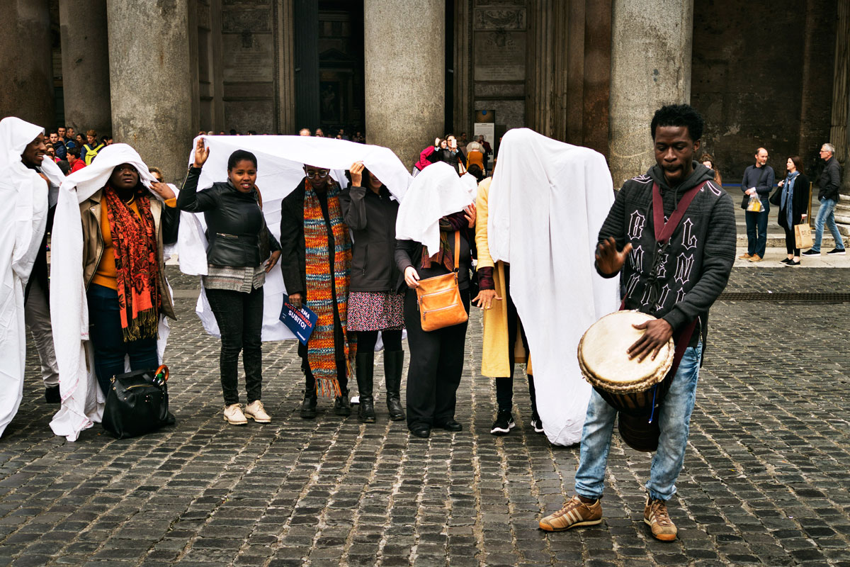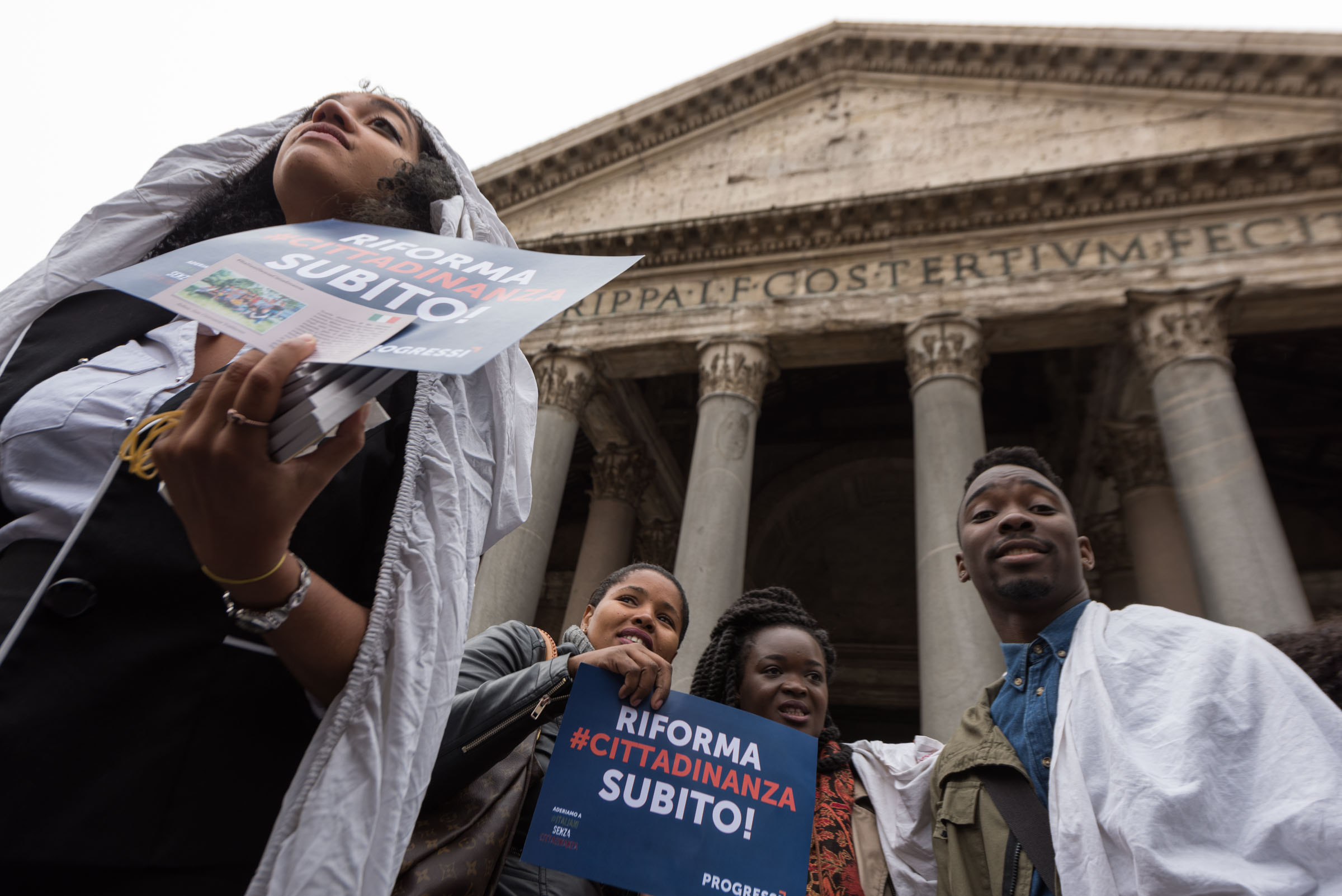 Per dare una smossa al Senato, i cittadini fantasma, sostenuti dalla campagna L’Italia sono anch’io, si sono riuniti a Roma in piazza del Pantheon e contemporaneamente nel resto d’Italia. “Siamo italiani, ma non di fatto” dicono ai giornalisti che li intervistano tra lo stupore e la curiosità dei turisti.