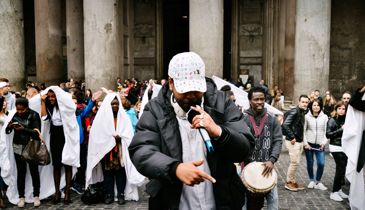 Coperti da un telo bianco, come dei simbolici fantasmi, hanno ballato, suonato e cantato mostrando all’Italia il loro desiderio e diritto di essere riconosciuti come italiani. Sono gli #Italianisenzacittadinanza, figli di cittadini stranieri, nati e/o cresciuti in Italia ma senza essere giuridicamente italiani.