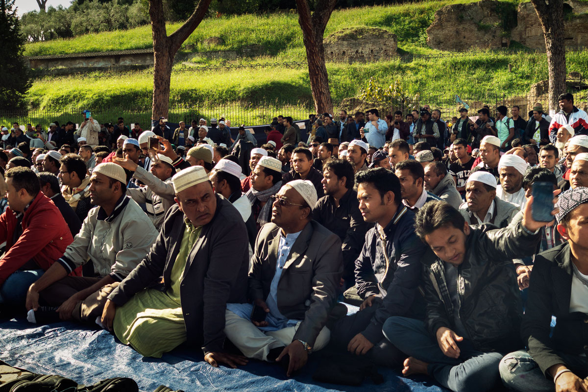 All’ombra del Colosseo, il 21 ottobre, un centinaio di musulmani, per lo più di nazionalità bengalese, egiziana e marocchina, si sono riuniti per una preghiera di protesta contro la chiusura delle moschee ritenute dall’amministrazione capitolina non idonee all’uso.