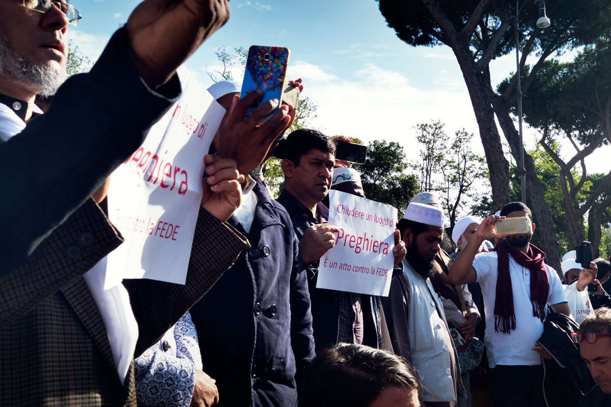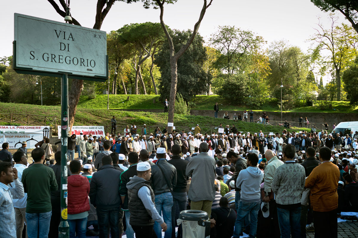 Su richiesta dell’associazione Dhuumcatu, la comunità musulmana si è ritrovata in via di San Gregorio, proprio nel centro di Roma, per denunciare le troppe criminalizzazioni nei confronti dei loro luoghi di preghiera, bollati come abusivi o non a norma. Secondo la comunità musulmana di Roma, in mancanza di una normativa di riferimento diventa complesso trovare soluzioni in autonomia dalle amministrazioni.