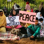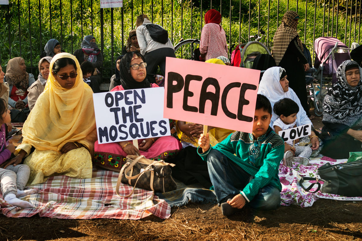 I musulmani hanno quindi deciso di radunarsi pacificamente in piazza, mostrando un foglio con la scritta chiudere un luogo di preghiera è un atto contro la fede, per ascoltare l’Imam ribadire i loro diritti. Anche le donne, seppur defilate rispetto al resto del gruppo, hanno partecipato alla preghiera insieme ai bambini che giocavano accanto a loro.