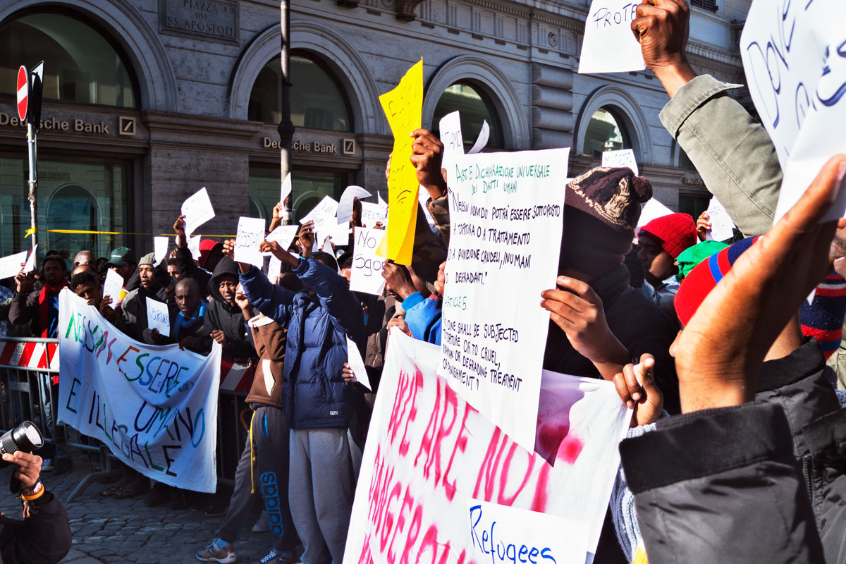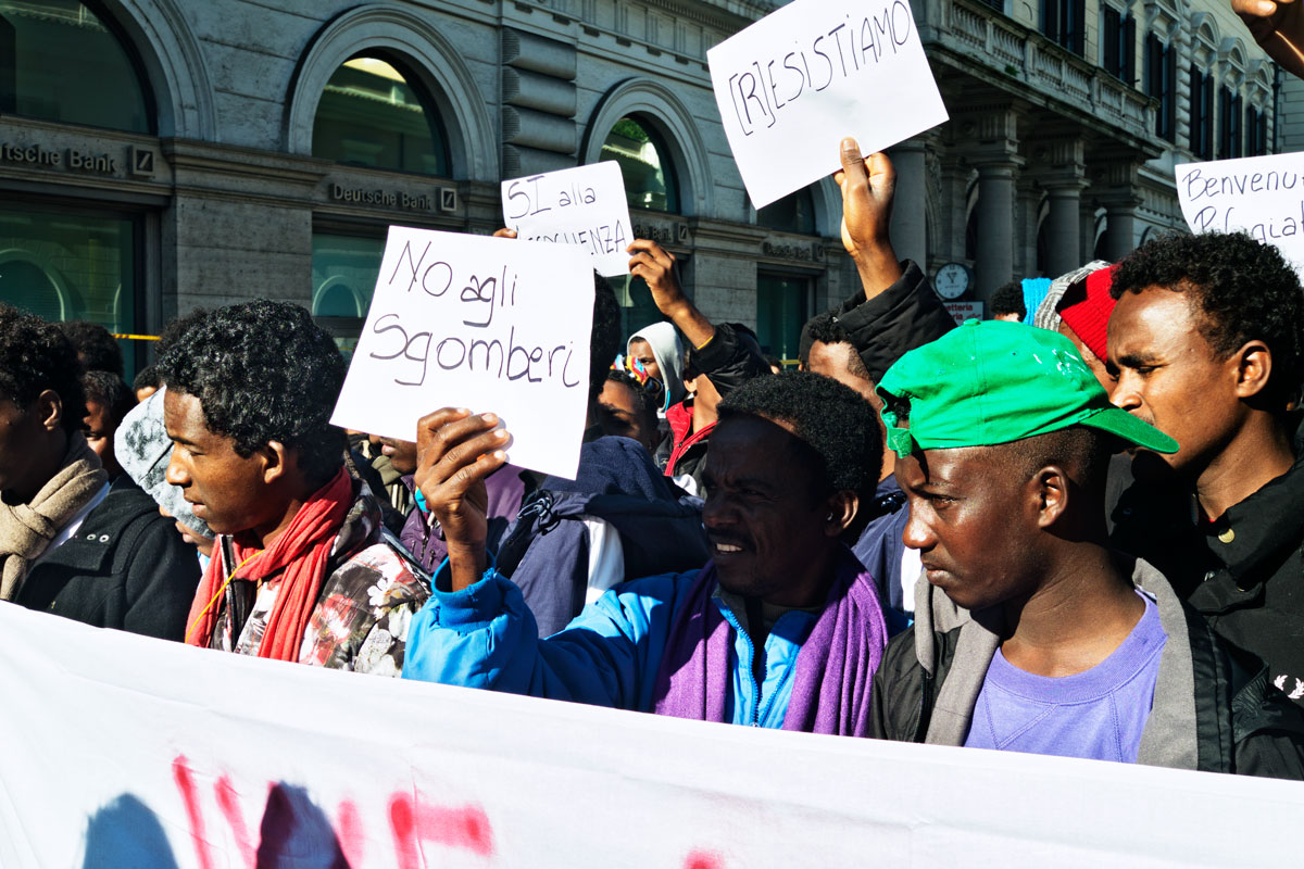 Sono scesi di nuovo in piazza i migranti del Baobab, sabato 12 novembre in Piazza Santi Apostoli, per protestare contro l’ennesimo sgombero avvenuto la settimana scorsa.
