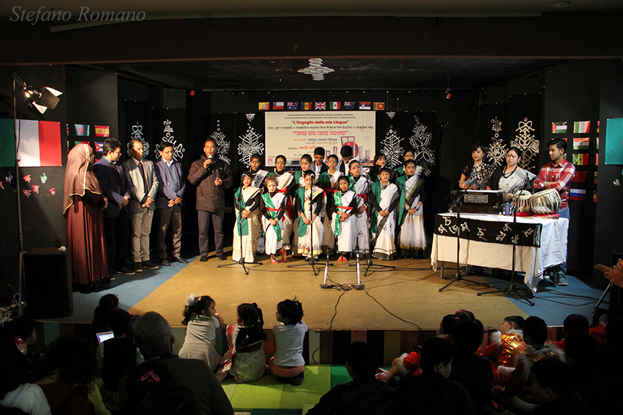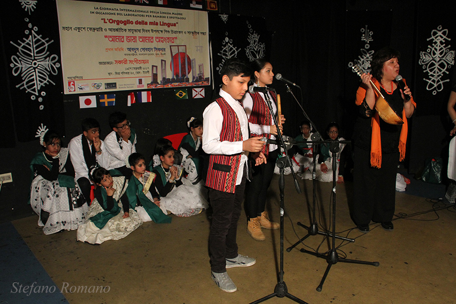 Il 21 febbraio è stato scelto per ricordare il 21 febbraio 1952, quando diversi studenti bangladesi dell’Università di Dhaka furono uccisi dalle forze di polizia del Pakistan (che allora comprendeva anche il Bangladesh) mentre protestavano per il riconoscimento dell lingua bangla come lingua ufficiale. Questo anno, oltre alla presenza del nuovo Ambasciatore Mr. Abdus Sobhan Sikder, e alla consueta partecipazione dei Cori multietnici Sestavoce e Quinta Aumentata del maestro Attilio Di Sanza, del coro multietnico Romolo Balzani e della scuola Pisacane, si sono aggiunti per la prima volta i bambini cinesi della scuola Dong Fang e Pepito e Julia, maestri di Marinera dal Perù, accompagnati e presentati sul palco da Elsa Javier.