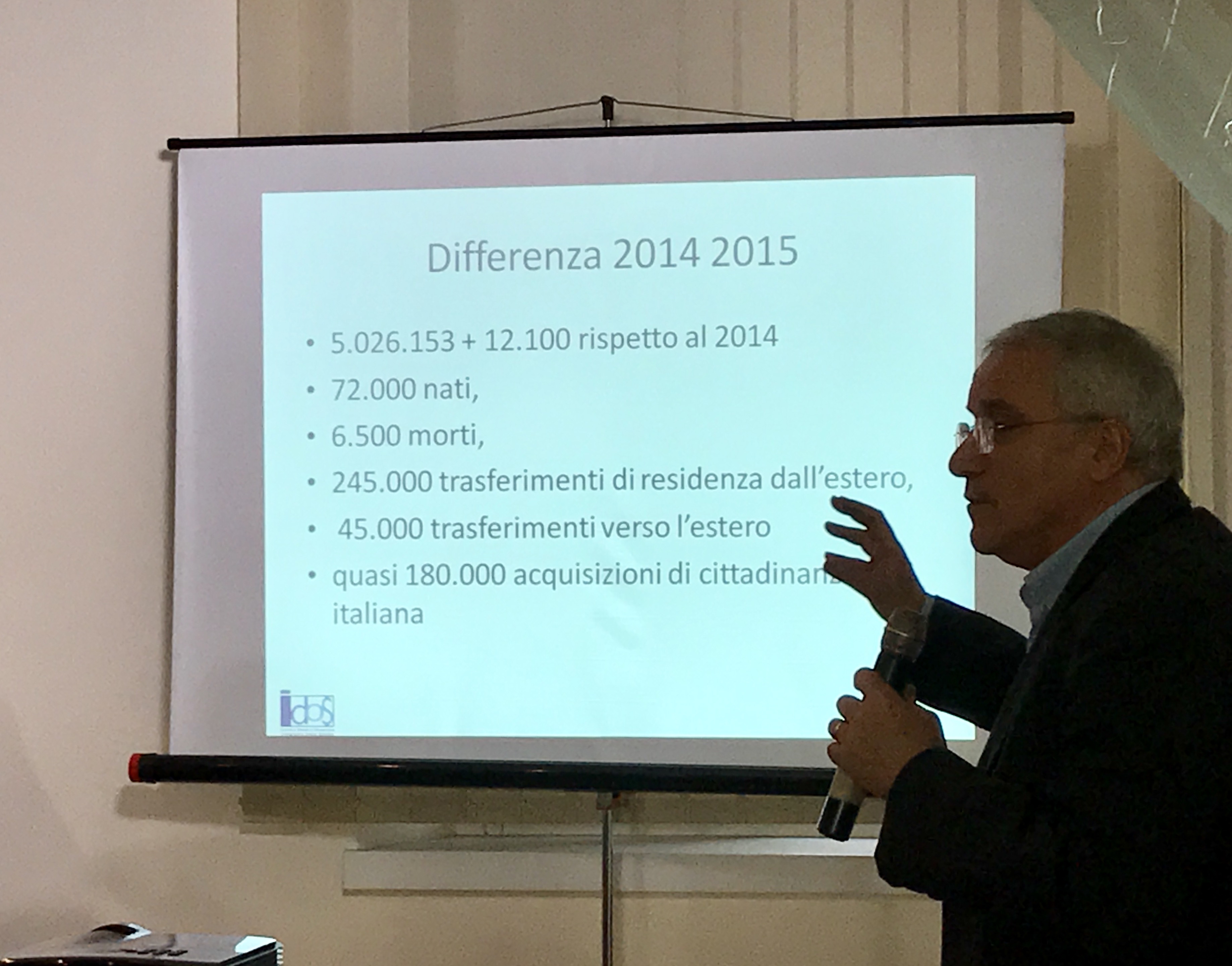 La crisi occupazionale dal contesto internazionale a quello italiano: l’intervento di Ugo Melchionda, Presidente di IDOS, ha chiarito alcuni aspetti sull’immigrazione e la presenza straniera in Italia. Rispetto al mercato del lavoro, nel nostro paese gli occupati stranieri nel 2015 rappresentano il 10,5% del totale e si concentrano soprattutto nel terziario e nei lavori manuali dequalificati: sono infatti 965.000 gli immigrati il cui livello d’istruzione è più elevato di quanto richiesto dal lavoro che svolgono. Melchionda ha parlato di “brain waste”, un fenomeno purtroppo spiccatamente italiano, che si traduce in una mancata capacità di valorizzare le competenze di persone qualificate. Resta forte però la spinta degli immigrati all’avvio di nuove attività commerciali.