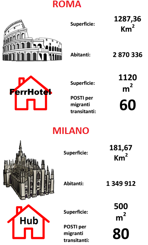 I numeri a confronto fra Roma e Milano invitano a riflettere su proporzioni che non tornano, ancor più tenendo conto dei recenti fatti di cronaca che vedono Milano di nuovo in emergenza accoglienza con l’Hub oltre il numero di capienza massima, stimato a 250 posti totali. Come farà Roma?