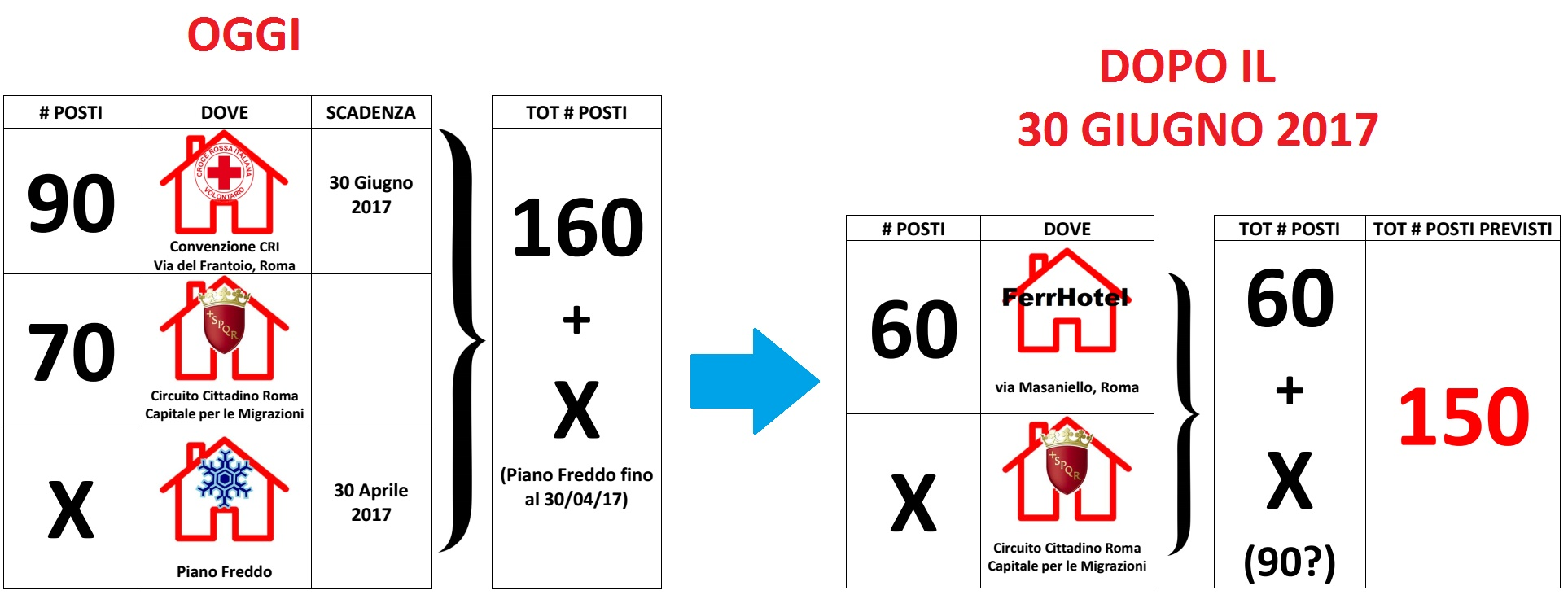 Alla conta dei 150 posti previsti per i migranti transitanti per il 30 Giugno, ne mancano all’appello 90: saranno tutti presi nel Circuito Roma Capitale per le Migrazioni?