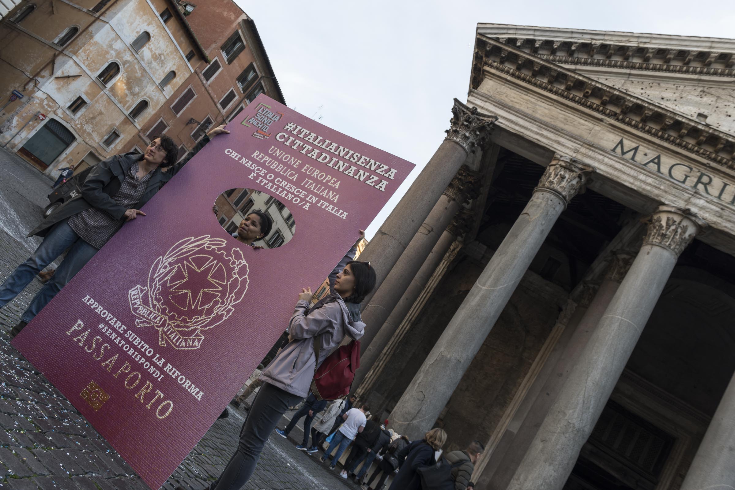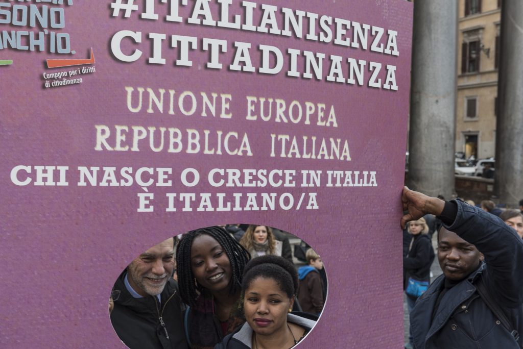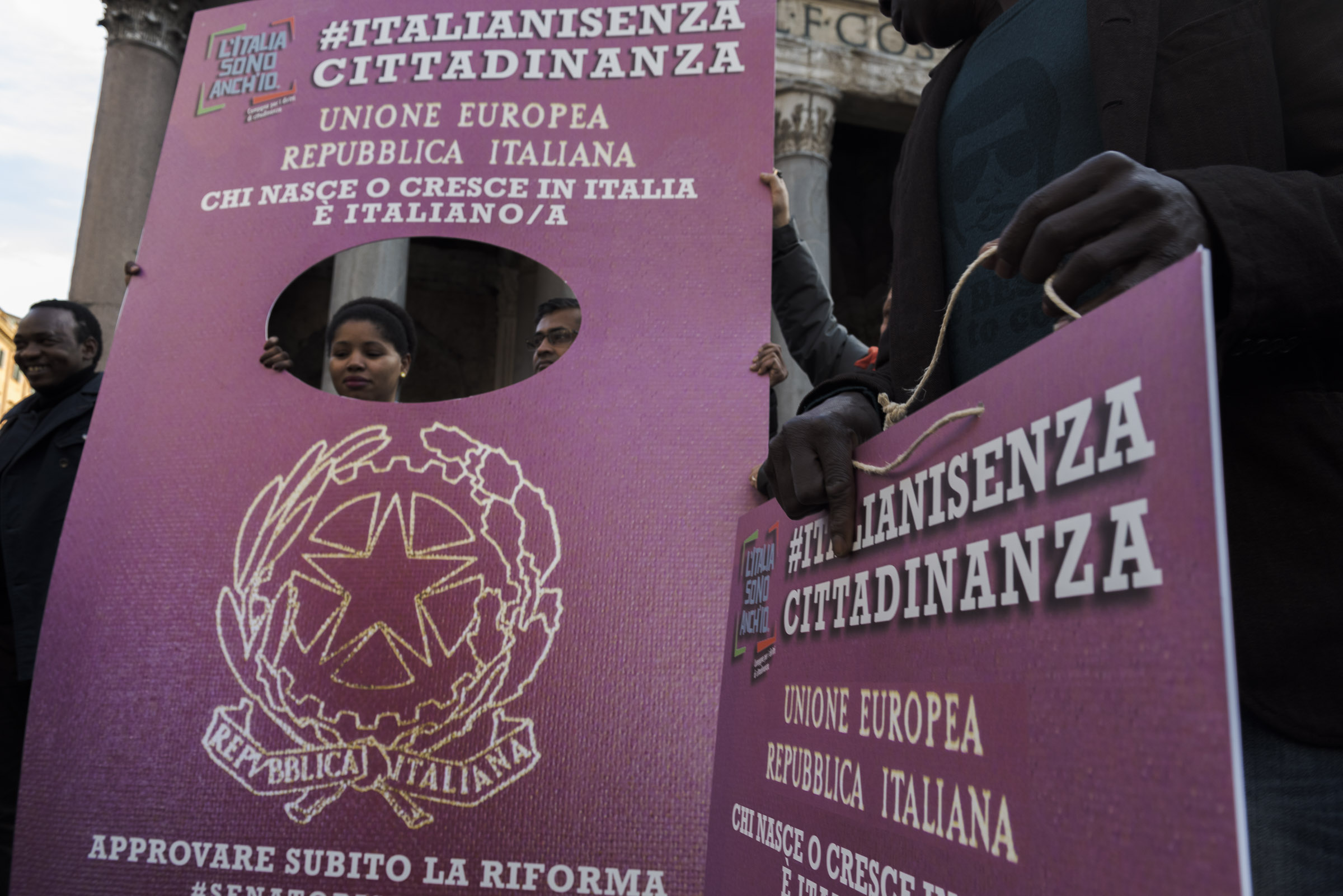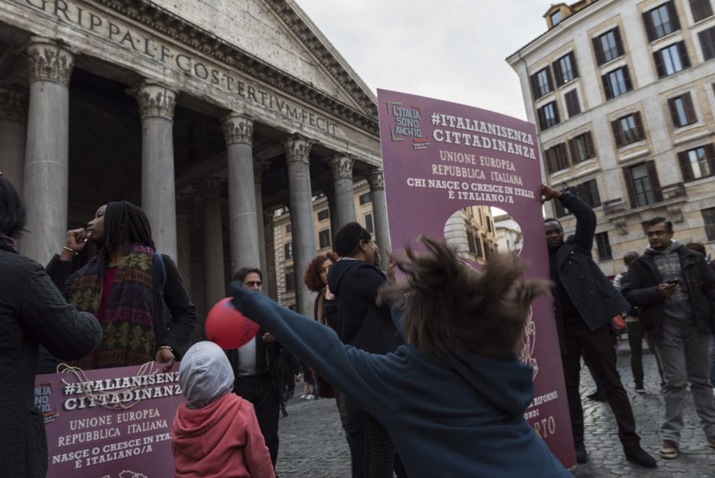 Gli italiani in attesa della cittadinanza, e della riforma, sono scesi in piazza ancora una volta martedì 7 febbraio per chiederne l’approvazione in Senato, saltando il passaggio in Commissione. Gli incontri si ripeteranno: sempre davanti al Pantheon, il martedì alle 15.30, fino al 28 febbraio, giorno della manifestazione nazionale.Protagonista del flashmob una schiera di passaporti impersonati dagli italiani senza cittadinanza. Sopra lo stemma della Repubblica campeggia la scritta: “chi nasce o cresce in Italia è italiano”. Un’affermazione che è diventata una richiesta costante.A posare tra i passaporti ideali c’è anche Graziano Del Rio, ministro dei Trasporti e delle Infrastrutture, che con un tweet ha definito la riforma una legge da portare avanti.