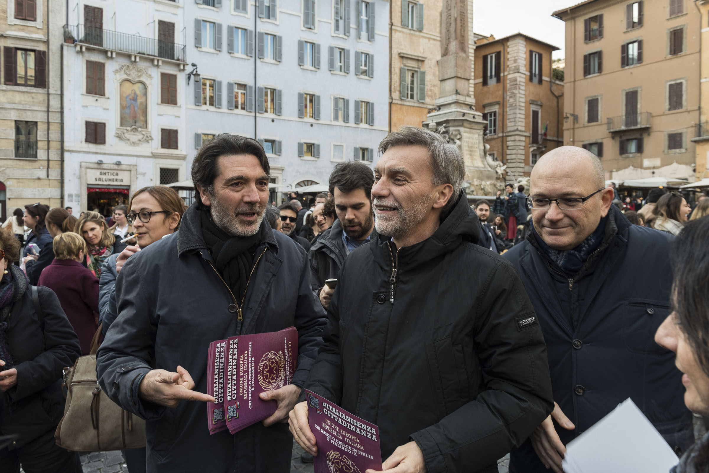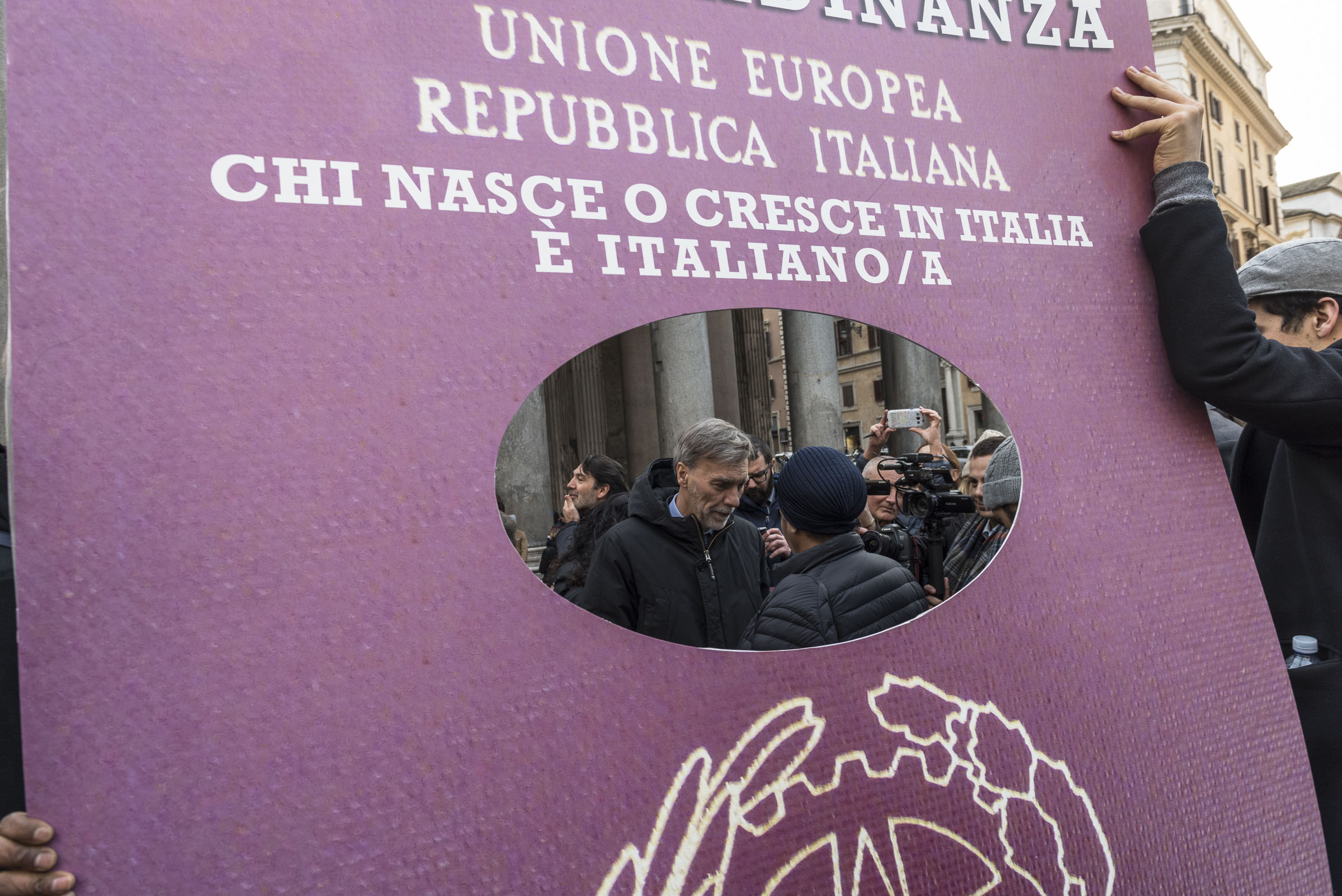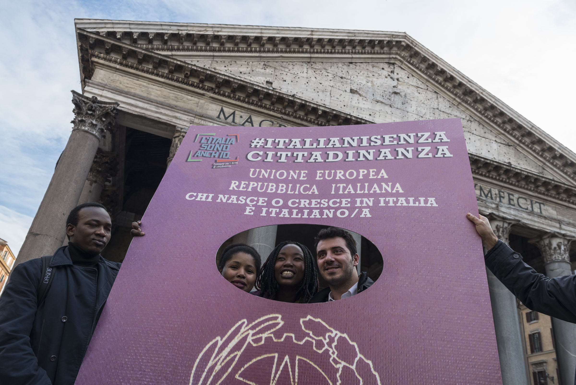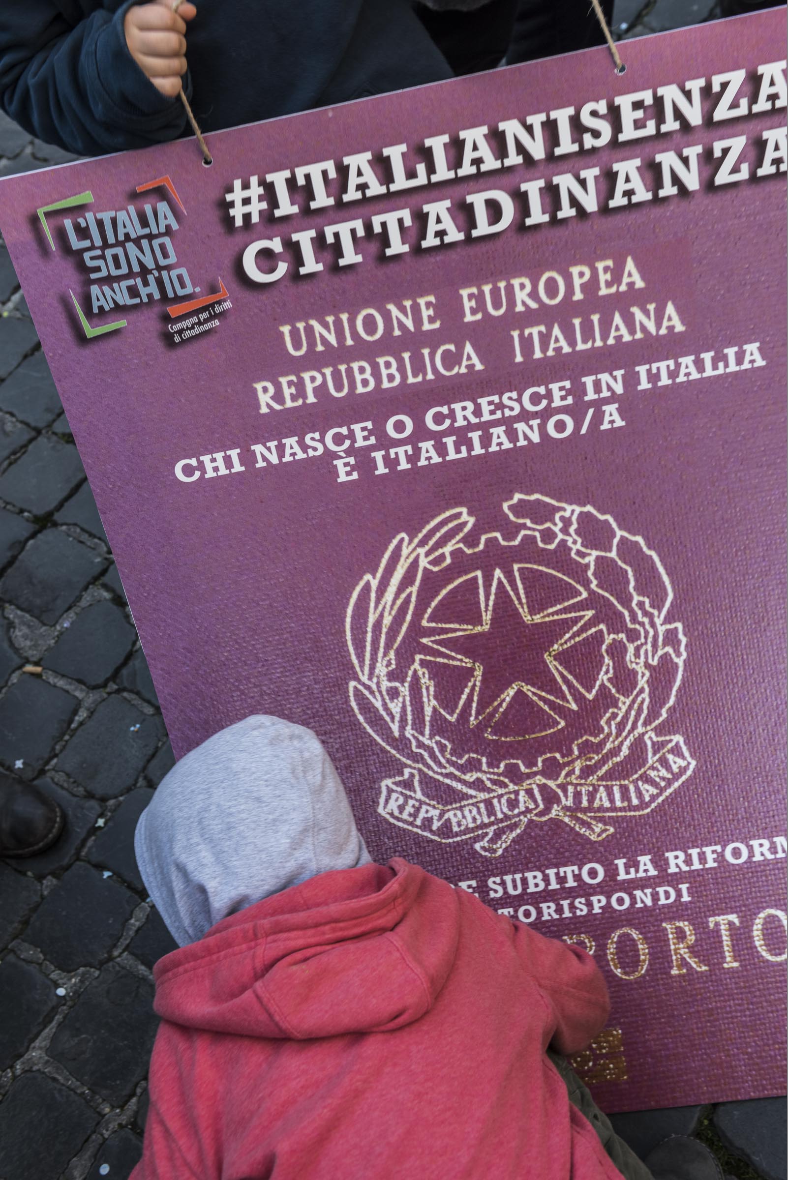 Gli italiani in attesa della cittadinanza, e della riforma, sono scesi in piazza ancora una volta martedì 7 febbraio per chiederne l’approvazione in Senato, saltando il passaggio in Commissione. Gli incontri si ripeteranno: sempre davanti al Pantheon, il martedì alle 15.30, fino al 28 febbraio, giorno della manifestazione nazionale.Protagonista del flashmob una schiera di passaporti impersonati dagli italiani senza cittadinanza. Sopra lo stemma della Repubblica campeggia la scritta: “chi nasce o cresce in Italia è italiano”. Un’affermazione che è diventata una richiesta costante.A posare tra i passaporti ideali c’è anche Graziano Del Rio, ministro dei Trasporti e delle Infrastrutture, che con un tweet ha definito la riforma una legge da portare avanti.