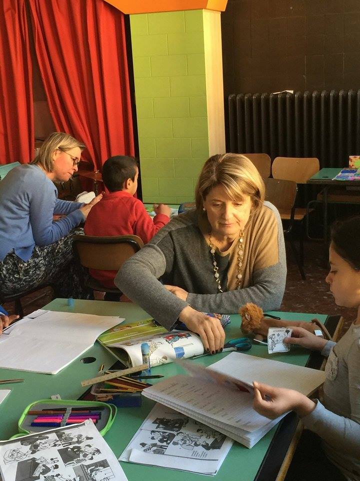 Alunni stranieri con  le volontarie Piuculture alla scuola in via Santa Maria Goretti