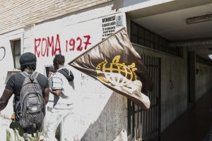 Alberto Urbinati è il presidente della Liberi Nantes, e parlando di parrocchia e di ricostruzioni ne cita una in particolare: “i ragazzi della squadra hanno portato l’illuminazione in una strada del quartiere rifacendo l’impianto elettrico. Noi abbiamo fatto i lavori, lui paga la bolletta” scherza, indicando don Aristide. Vicolo della Concordia, l’hanno chiamato. Se lo cerchi sulle mappe non lo trovi, ma la targa c’è: è scritta a mano e sopra ci sono tante mani colorate. Una di queste è quella di Sumaila, giocatore storico. Sulla sua maglia campeggia una frase di Ben Harper: I can change the world with my own two hands.“Trenta ragazzi sono venuti qui a lavorare e hanno dato vita a questo campo” racconta Urbinati davanti al XXV Aprile, scritta rossa su sfondo blu, gli stessi caratteri che furono quelli dell’Albarossa, la squadra di calcio dei militanti comunisti degli anni ’70. Enzo ci ha giocato da libero fino ai 44 anni, e di quel campo ricorda che le misure furono prese coi piedi dal presidente “che di mestiere faceva lo scopino”. Da giocatore Enzo passa al giornalismo, poi al sindacato, ma resta sempre legato alla squadra. Deve litigare con i compagni per organizzare un concerto a pagamento con Antonello Venditti: “facevamo sempre cose gratuite e l’ingresso lì era di cinque mila lire” racconta, ma quando all’evento si presentano 4000 persone paganti, ha la meglio sugli scettici. Ricorda le partite nei manicomi dopo la legge Basaglia, quelle all’Olimpico per le fabbriche occupate, il mese trascorso in Russia.