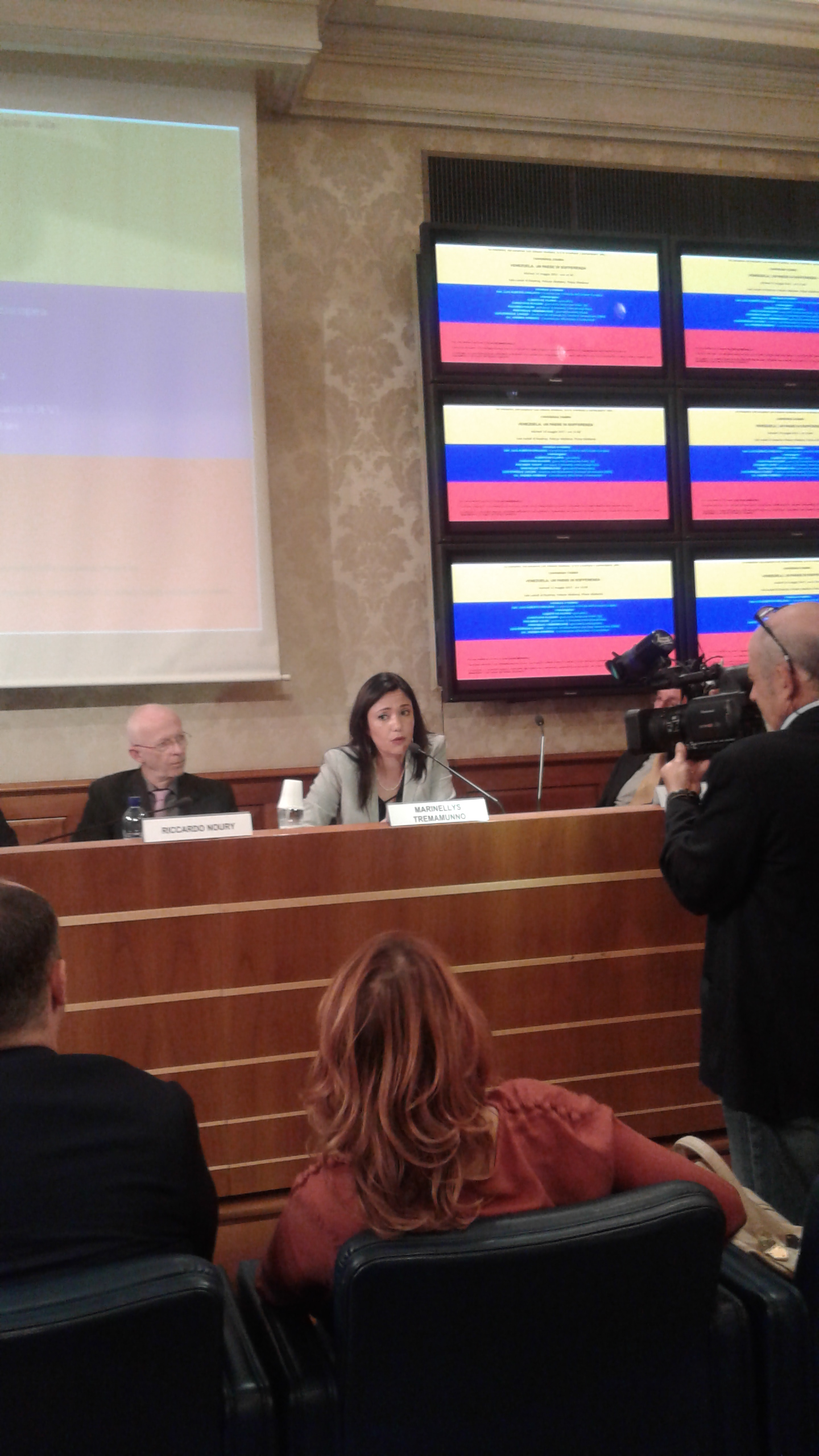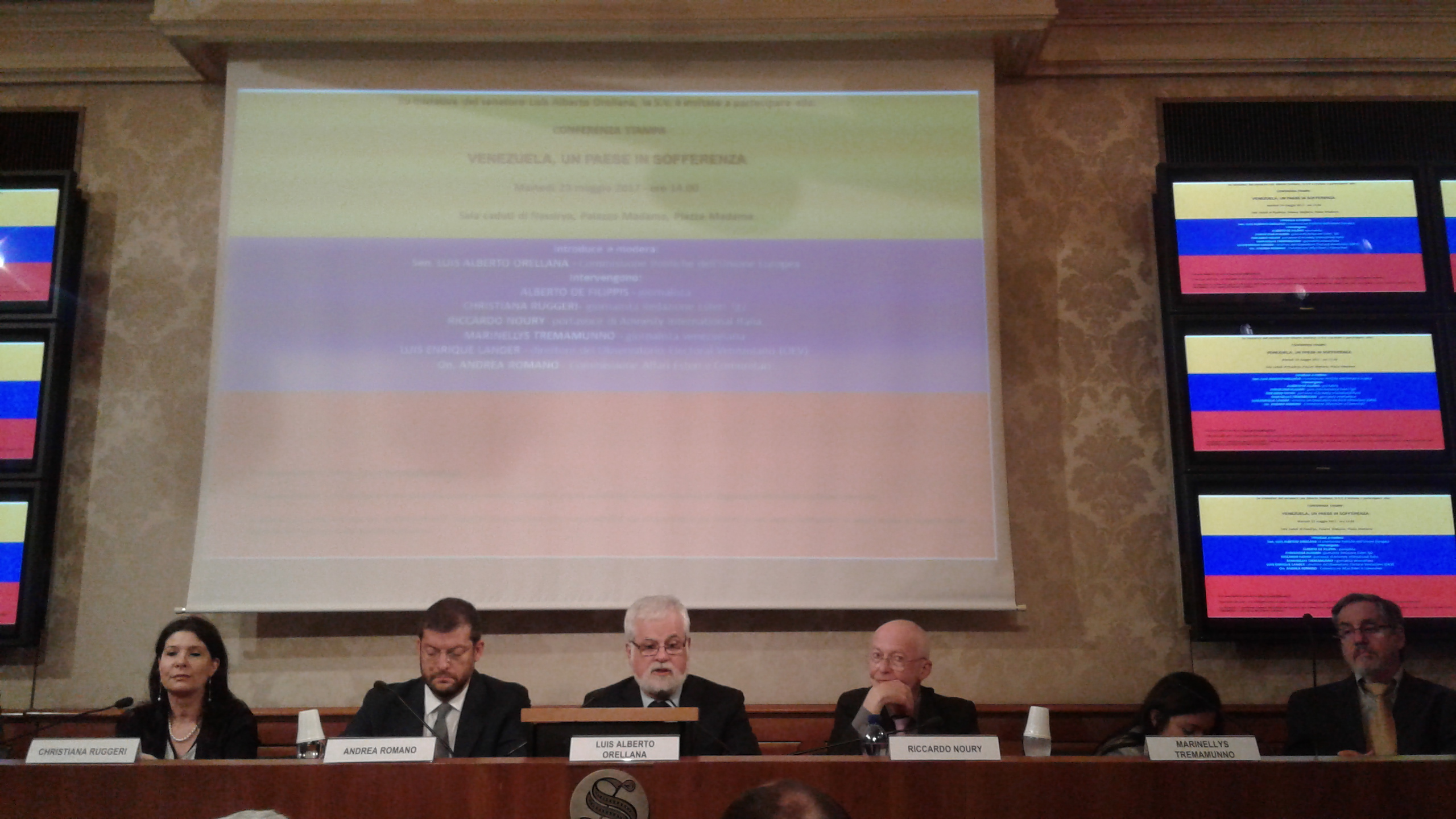 “Venezuela, un Paese in sofferenza” Al Senato con Andrea Romano, Riccardo Noury, Alberto de Filippis, Christiana Ruggeri, Luis Enrique Lander e Luis Alberto Orellana“Siamo sull’orlo di un massacro, non di una guerra civile”: la voce di Marinellys Tremamunno, giornalista venezuelana in Italia dal 2009, è rotta dalle lacrime. Proprio ieri, la sua città è stata il teatro dell’ennesima violenza: la polizia ha fatto irruzione in alcuni palazzi con lacrimogeni, rompendo vetri, porte e finestre. È solo l’ultimo dei casi di violenza registrati nel paese: a 53 giorni dall’inizio delle manifestazioni pacifiche si contano “2600 arresti, 1000 persone in carcere senza processo e 334 giudicate da un tribunale militare e non da quello civile”. “Dal 2014 stiamo seguendo la situazione del Venezuela” dice Riccardo Noury, portavoce di Amnesty International Italia, durante la conferenza stampa organizzata dal senatore Luis Alberto Orellana “nell’ondata di manifestazioni partita a marzo 2017 abbiamo riscontrato un uso eccessivo della forza da parte della polizia, arresti di massa e imputati civili affidati ai tribunali militari”.La giornalista italo-venezuelana Marinellys TremamunnoA ciò si aggiunge una drammatica crisi economica e sociale che vede lesi i diritti all’alimentazione e alla salute. Non c’è denaro e quel poco che c’è non vale nulla. Per comprare un po’ di cibo occorre molto denaro. C’è chi muore per mancanza di farmaci. Sembra paradossale eppure uno dei paesi più benestanti dell’America Latina, è diventato uno dei più poveri. Si tratta di una vera “emergenza umanitaria” sottolinea Andrea Romano, della Commissione Affari Esteri e Comunitari, che occorre superare solo depoliticizzando la situazione e purificandola dalle contaminazioni ideologiche che rischiano di offuscare la realtà. Una realtà complessa e difficile, risultato di una stratificazione politica, giuridica ed economica che dura da 18 anni. Non è più possibile voltarsi dall’altra parte: come ha sottolineato Orellana, è necessario aprire gli occhi, senza tuttavia cadere nell’ingerenza.
