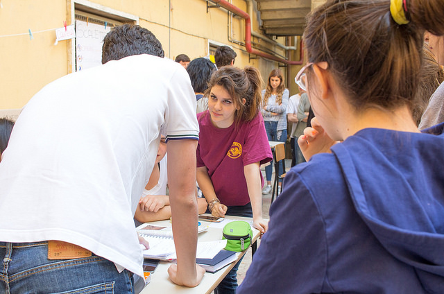 Sono le otto e mezza. Il cortile dell’Istituto Maria Montessori in via Casperia si sta per trasformare in una riproduzione del Municipio II. E’ arrivato il giorno tanto atteso: i ragazzi del corso di Infomigranti scuola riporteranno il lavoro svolto durante il Laboratorio di giornalismo sociale ai loro compagni di classe. L’emozione è nell’aria, questi venti ragazzi, di diverse classi e sezioni del liceo si sono impegnati da gennaio in un progetto che li ha visti pian piano diventare giovani giornalisti e produrre un blog: Extra-romani. Da impacciati liceali alle prime armi, hanno scoperto gli strumenti del mestiere e sono cresciuti, “professionalmente ed umanamente”, come dice Camilla al momento della consegna del diploma. Si sono esposti, si sono sporcati le mani, si sono divertiti e a volte scontrati con gli inconvenienti di una professione, che li ha portati a scoprire, sempre con entusiasmo, realtà sconosciute.
