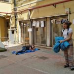 I ragazzi del Laboratorio provano e riprovano, c’è un gran da fare, c’è anche qualcuno che viene e deve scappare per un’ora a fare il compito in classe, e chi è bloccato con la simulazione della seconda prova, ma riesce comunque a essere presente per una ventina di minuti, impossibile mancare l’appuntamento.