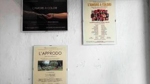 Locandine degli spettacoli teatrali diretti da Magda Mercatali, affissi nella classe
