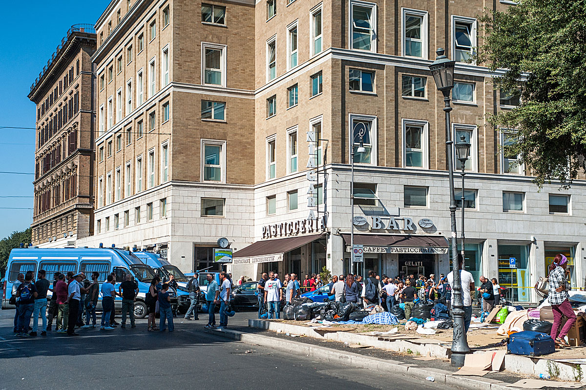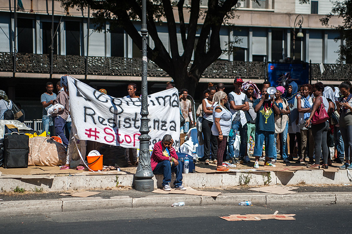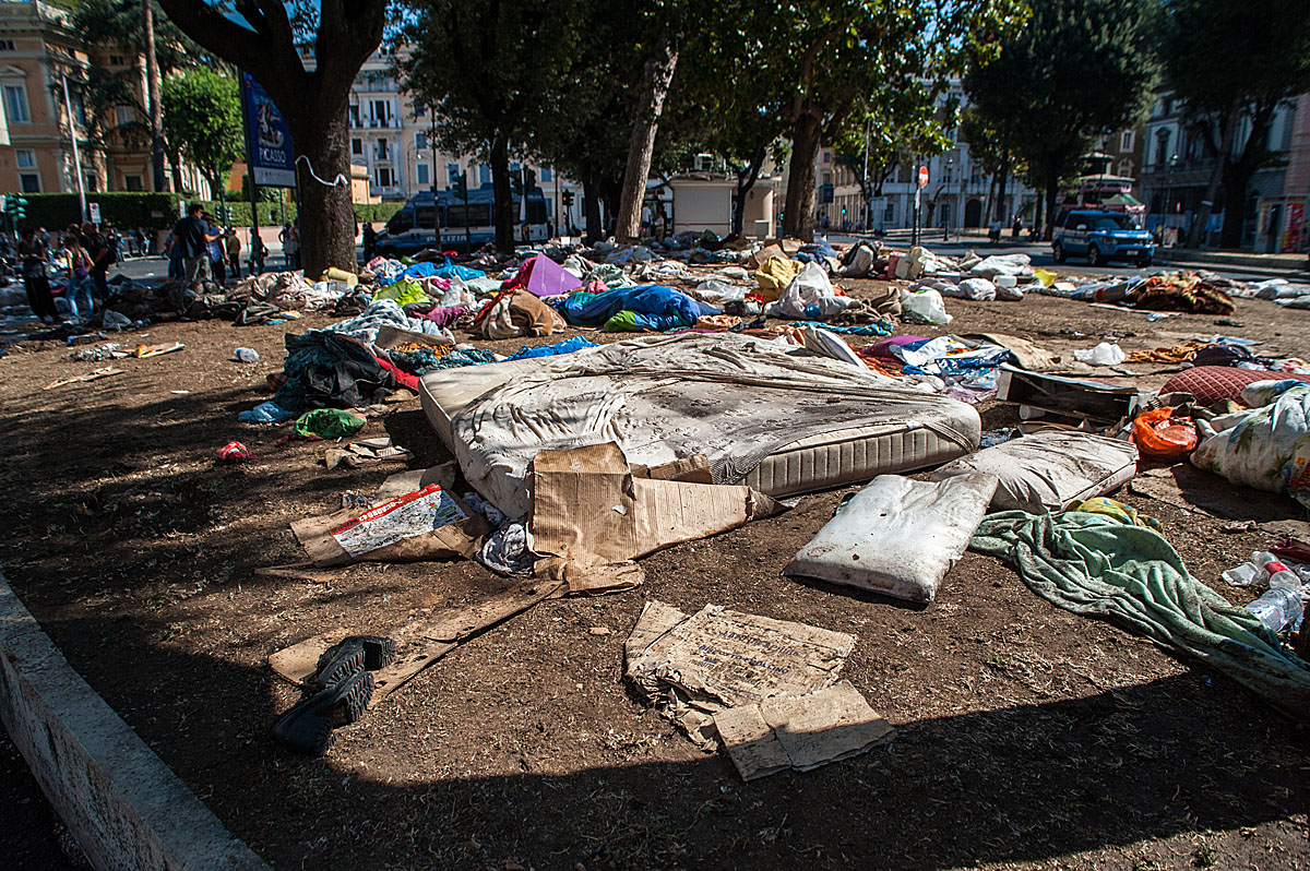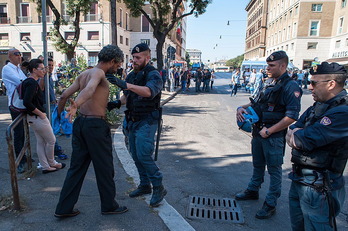 Sgombero di Piazza Indipendenza: dal giorno alla notte, all’inizio di un nuovo giorno.Le immagini dell’attesa, le interazioni, la tensione e i gesti quotidiani.Foto di Marcello Valeri