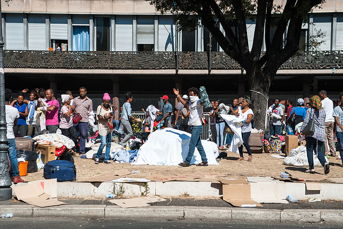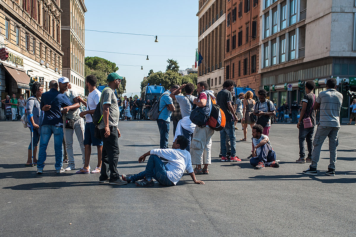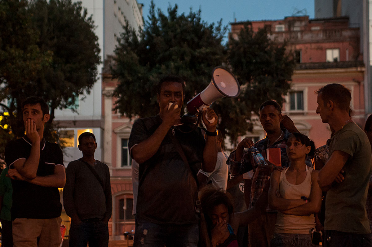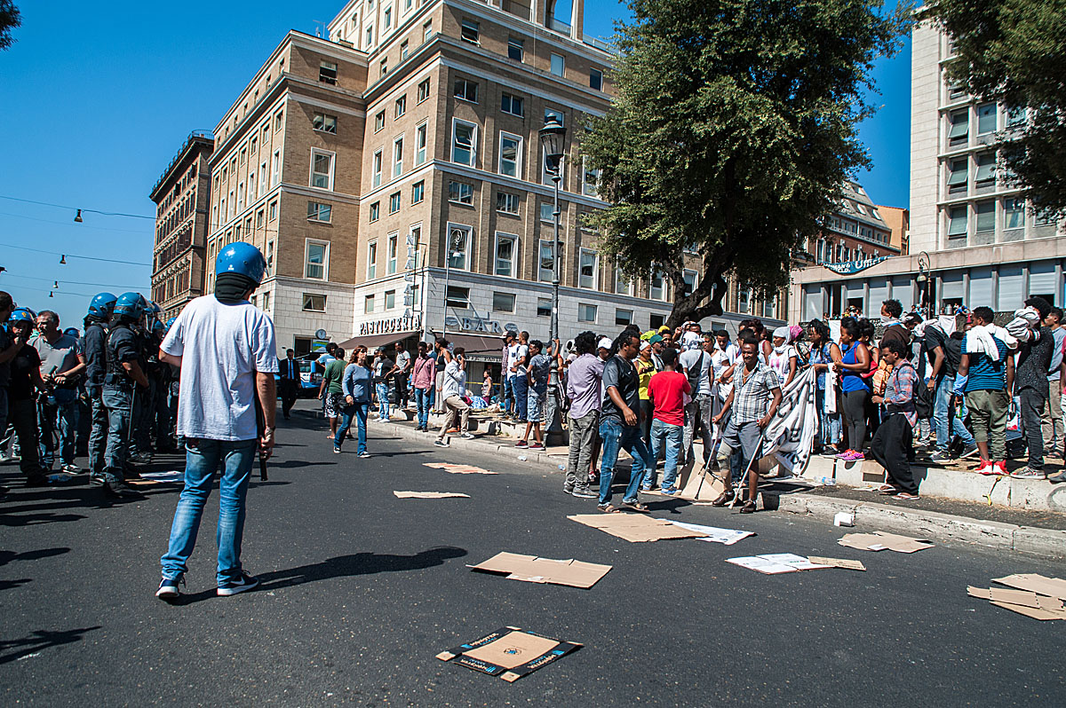 Sgombero di Piazza Indipendenza: dal giorno alla notte, all’inizio di un nuovo giorno.Le immagini dell’attesa, le interazioni, la tensione e i gesti quotidiani.Foto di Marcello Valeri