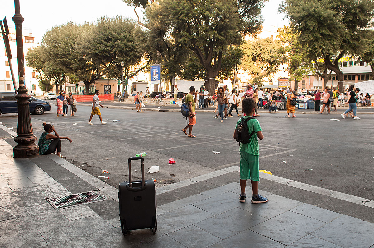 Una volontaria attivista presente fin dal primo giorno segnala le persone con maggiori fragilità cercando soluzioni per rendere meno gravosa la situazione: docce, sistemazioni per famiglie, piccole necessità per chi, dall’oggi al domani, non ha più un tetto sulla testa sotto il caldo cocente di Roma in agosto “c’è un ragazzo senza una gamba e con una protesi e un altro senza un piede con schegge di mina nella gamba e nel torace”. Andrea Iacomini, portavoce UNICEF Italia, ricordando che l’assessore Baldassarre è un’ex-dipendente UNICEF, commenta “vogliamo sapere all’interno di questa struttura come sono le condizioni igienico-sanitarie perché non lo sappiamo e ci sono donne e bambini. Non ci fanno salire. Il nostro appello è: proteggere i bambini e le loro mamme in ogni situazione. Questo sgombero deve avere una soluzione e un progetto naturalmente successivo. Io mi auguro la Baldassarre ricordi le sue battaglie e che venga a sincerarsi di persona della situazione insieme alla sindaca Raggi. Fra l’altro sono tutte persone che hanno propri diritti, permessi di soggiorno regolari, status di rifugiato, quindi non capisco come mai non si trovi una soluzione. La Convenzione dell’89 sui diritti dell’infanzia, che la Baldassarre conosce bene, prevede di proteggere i bambini ovunque essi si trovino: Roma non può accettare una condizione del genere. Vogliamo poter entrare anche con le altre ONG e con il Sindaco, l’assessore alle politiche sociali e le istituzioni per capire insieme qual è la situazione e trovare soluzioni”. Arriva poi la notizia della fine dell’incontro al quale, si apprende, non erano presenti né la Baldassare, né la Sindaca Raggi, ma una rappresentanza volta a capire quali siano le persone più fragili e costituire poi un tavolo di interventi. Che cosa sarà di tutti gli altri? Non si ha ancora risposta.