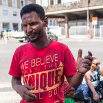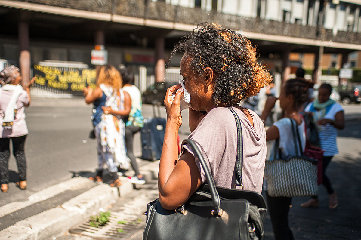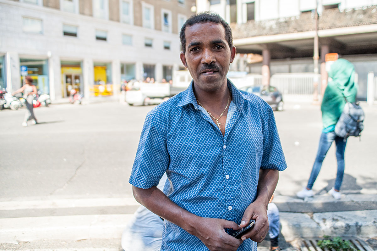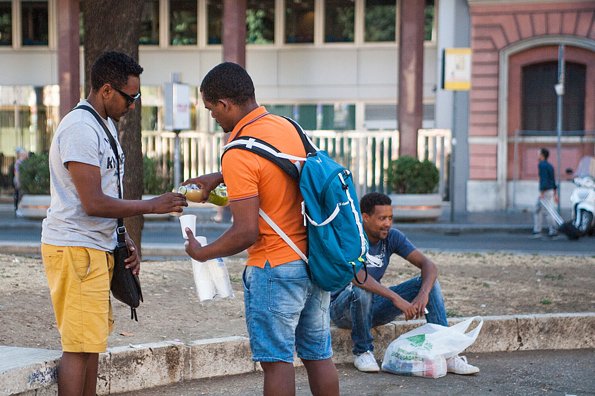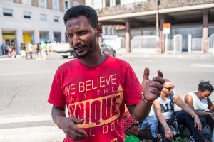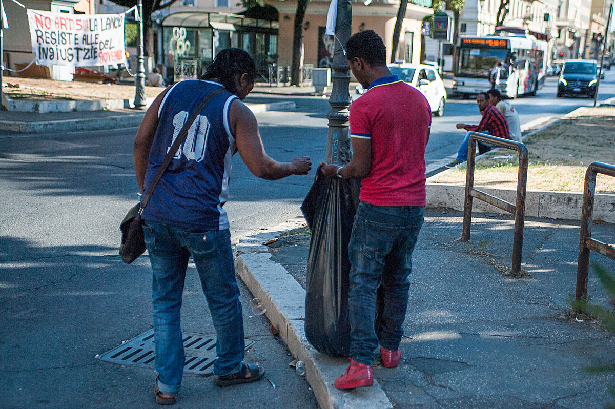 “Sono arrivati senza avviso, io dormivo. Ci siamo spaventanti perché erano in tenuta antisommossa, ma non abbiamo reagito, abbiamo preso i documenti e siamo andati alla Questura per essere identificati”, così racconta Bereket il momento dello sgombero. “Una bambina ha chiesto spaventata: quando c’è una persona cattiva dobbiamo chiamare i poliziotti, ma quando c’è un poliziotto cattivo chi dobbiamo chiamare? Noi non sapevamo cosa risponderle” prosegue. “Tutto era ok perché abbiamo regolare permesso di soggiorno per protezione internazionale. Uscendo dalla Questura ci hanno salutati e siamo rimasti in mezzo a una strada: non abbiamo più una casa. Sono 4 anni che siamo qui: per 4 anni cosa stavano facendo? Perché non hanno pensato a una soluzione alternativa prima di buttarci per strada? Io lavoro all’Olimpico, ho un piccolo contratto con una cooperativa per vendere le bibite durante la partita della Roma, soltanto la Roma. Non ho assicurazione (mostrandoci una ferita sulla spalla dovuta al peso delle bibite che porta), se una bibita si rovescia, la pago io. Di tutto il guadagno io prendo il 12%. Se vendo bibite per 100 euro guadagno 12 euro. E la Roma gioca una volta ogni 15 giorni. Non mi importa della fatica, ma chi non ha lavoro non ha vita: è la base della vita, la motivazione. Anche la polizia fa il suo lavoro, sono dipendenti, eseguono gli ordini, quindi protestare con loro non serve, dobbiamo parlare con il prefetto”.