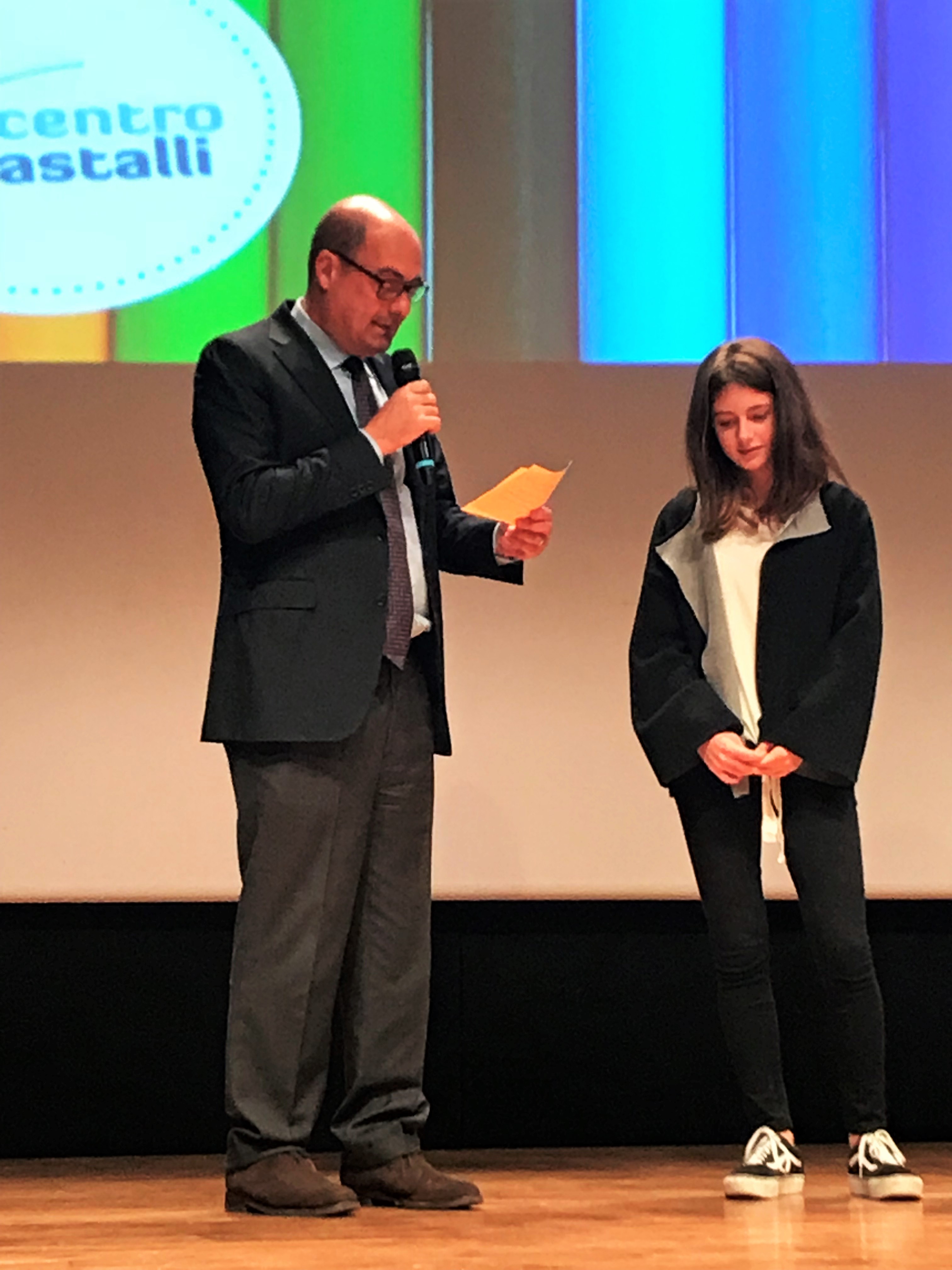 “Queste iniziative sono belle perché offrono un’alternativa alla paura. Quando una cosa non si conosce l’istinto dell’uomo può avere due atteggiamenti: la curiosità o la paura. La curiosità ti porta a informarti a conoscere a crescere, a capire, a decidere se una cosa è positiva o negativa, ti fa essere una persona che pensa. La paura chiude, rende più fragile, fa reagire con l’istinto” così Nicola Zingaretti nel suo intervento elogia “La Scrittura non va in esilio”, alla premiazione dei concorsi letterari promossi dal Centro Astalli che si è svolta il 25 ottobre.Quasi mille studenti provenienti da tutta Italia si sono trovati a Roma presso l’Auditorium del Massimo per la premiazione dei vincitori del concorso “La scrittura non va in esilio”, alla sua XI edizione dedicato alle scuole superiori, e di “Scriviamo a colori”, per le scuole medie giunto alla III edizione.I due concorsi sono frutto dei progetti per le scuole Finestre e Incontri sul diritto d’asilo e il dialogo interreligioso che il Centro Astalli promuove in 15 città italiane portando a incontrare studenti, testimoni di altre religioni e rifugiati.Giovanni Anversa, giornalista Rai, presenta la manifestazione lanciando subito l’appello a favore dello Ius Soli, di cui l’evento si fa promotore. Il presidente della regione Lazio, Nicola Zingaretti, accoglie l’invito e sottolinea quanto “la battaglia per lo Ius Soli non sia importante solo per ristabilire cittadinanze e diritti a qualcun altro vicino a noi, ma lo è anche perché ci permette di essere, più intelligenti e padroni della nostra vita”.È una platea di ragazzi dai 12 ai 19 anni ad ascoltare l’incoraggiamento e le parole di fiducia di Padre Giovanni La Manna, Rettore del Massimo, “la scuola è un luogo privilegiato che da sempre ha accolto senza distinzioni. A voi ragazzi la possibilità di cambiare questo mondo: vivete fino alla fine questa sfida”.