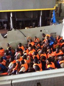 “Il personale medico sulle navi della Marina è composto da un medico e tre infermieri e bisogna esser pronti a situazioni di certo non facili. Non sono navi da crociera, non ci sono “finestre” negli ambienti, spesso si dorme con 7-8 persone sconosciute e i bagni sono quello che sono. Insomma ci vuole una forte convinzione per affrontare questa esperienza”, prosegue Puoti “quando sono partito la prima volta, a Luglio 2014, non ero mai stato su una nave e non sapevo minimamente cosa mi aspettasse. Quella volta abbiamo recuperato 2076 persone in 15 giorni”.Dopo quasi quattro anni l’equipaggio delle missioni è diventato una seconda famiglia “sulla nave c’è un clima particolare, un microcosmo, dove sei chiuso per 30-40 giorni sempre con le stesse persone, operando in condizioni difficilissime e per attività umanitarie, quindi si creano dei rapporti forti. È un mondo inimmaginabile: il cellulare non funziona, internet non funziona, non funziona nulla, così quei rari momenti di inattività ti metti sul ponte e tutti insieme si chiacchiera, ci si racconta, come un tempo attorno al caminetto. Quando scendiamo poi, ci manteniamo in contatto scrivendoci, cercandoci”.Dal 9 ottobre il dottor Puoti è coinvolto anche nel programma formativo di risposta alle emergenze sanitarie in mare nell’ambito di EUNAVFOR MED – operazione Sophia, dal nome di una bambina nata su una nostra nave militare.Che cos’è EUNADFOR MED – Operazione Sophia? “Da una parte un po’ Frontex, con il controllo delle frontiere marittime italiane-europee e il coordinamento ai soccorsi, dall’altra l’addestramento degli ufficiali della marina militare libica, ai quali ora stiamo delegando tutto. Noi, come Europa, gli stiamo dando know-how, tecnologia, motovedette, elicotteri, ma il problema è la mancanza di addestramento medico. Ora sto andando su e giù tra Roma e Taranto, dove c’è la base navale scuola, la Mariscuola, e lì arrivano i libici per seguire dei corsi di primo soccorso perché sulle loro motovedette non c’è un medico”.La preoccupazione più grande però rimane per il blocco in Libia e quello che sta accadendo.“A terra ci sono decine di migliaia di persone pronte a partire: nessun muro ha mai fermato la gente. Come ha detto giustamente Tiéman Hubert Coulibaly, ministro per l’Amministrazione Territoriale della Repubblica del Mali, incontrando il ministro Minniti: loro stessi vorrebbero fermarli perché ad andar via sono i giovani, la forza lavoro, il futuro. Quindi si rischia un circolo vizioso pericolosissimo: più partono, meno forza lavoro hanno, più si impoveriscono, più partono di nuovo. Chiaramente l’Italia è il Paese di primo impatto perché la Rotta Balcanica è ormai non praticabile dato che gli stati dell’Est hanno chiuso le frontiere”.Sinteticamente: a terra, in Libia, non sappiamo esattamente quante persone ci siano e le ONG sono andate via. “Ora come ora si arriva fino al golfo della Sirte e con qualche ansia, dopo le ultime minacce della Libia di Tobruk. Nell’ultima missione non abbiamo preso migranti e la cosa ha stupito tutti perché ad agosto di solito c’è il boom. Questo significa che in Libia sta accadendo qualcosa che noi ignoriamo. Noi stiamo addestrando gli ufficiali della marina libica per operazioni di emergenza medica, ma chi controllerà la situazione nei campi a terra? Le migrazioni non si sono terminate. Continuano e i migranti vengono fermati sulle spiagge della Libia: lì cosa accade? Deve esserci un giro economico che ignoriamo” e le recenti notizie purtroppo confermano che si parla di tratta di uomini. È necessario inviare personale medico e umanitario delle Nazioni Unite in Libia e superare lo slogan politico, ormai trasversale, “Aiutiamoli a casa loro”.A quando la prossima missione? “Dovrei ripartire a fine novembre, primi di dicembre, non vedo l’ora”.