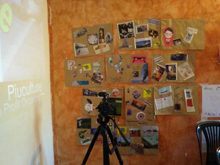 Il 24 mattina, dopo la presentazione dell’evento da parte di Martina Pignatti Morano, presidentessa di “Un ponte per”, la redazione di Piuculture ha aperto la settimana con attività rompighiaccio.Musica senegalese e teatro hanno permesso ai primi arrivati al Rome meeting di rilassarsi e di entrare nel vivo di quanto proposto.Una pila di giornali in un angolo, bastoncini colorati su cui scrivere il proprio nome, forbici, colla e carta da pacchi.La prima attività è stata quella di rappresentarsi con un collage su un foglio e spiegarlo a coppie, simulando un’intervista.Esposto l’operato del compagno al gruppo, tutti hanno legato polsi o caviglie con un filo di lana colorata, come nel cerchio delle storie africano, “perché quando condividiamo una nostra storia entriamo in una comunità che ci lega gli uni gli altri e questo è ciò che il giornale cerca di fare sul territorio, raccontare storie per creare legami e annullare la paura” racconta la redattrice di Piuculture che ha moderato l’evento.