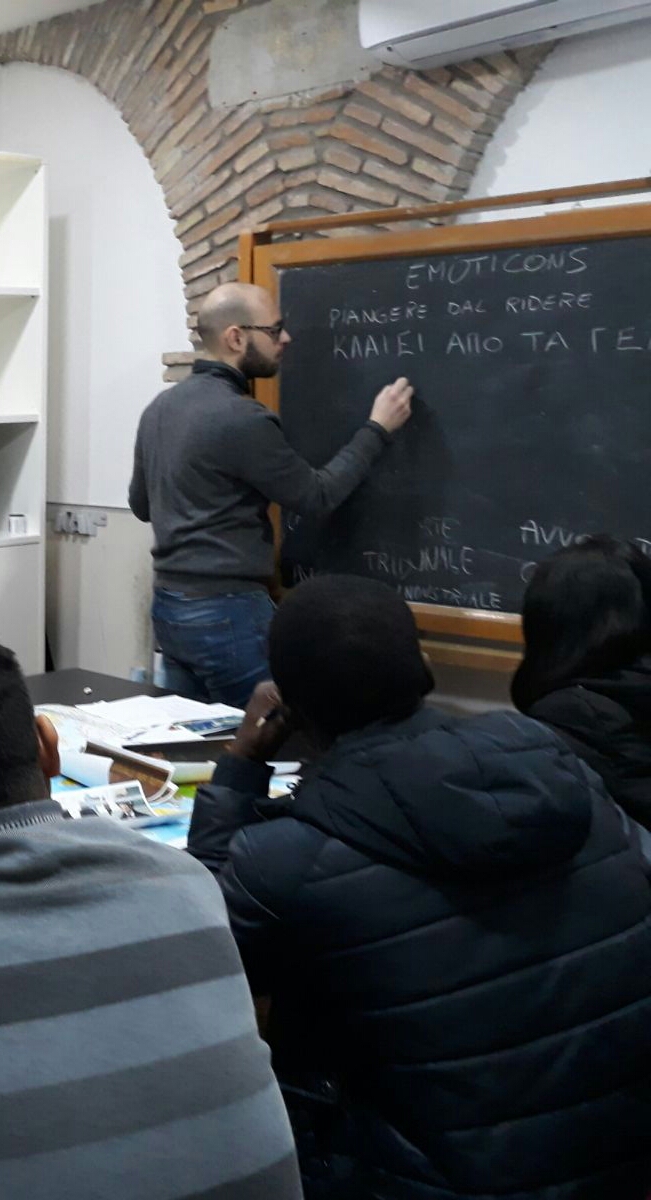 Erasmus Plus a Casa AfricaIl ragazzo seduto di fronte alla lavagna ha più o meno vent’anni e viene dal Burkina Faso: è in Italia da 5 mesi e quasi ogni giorno viene a Casa Africa a studiare l’italiano. Schiena dritta, testa china e un quaderno a righe aperto su una pagina completamente bianca, immobile grazie a una penna strategicamente posizionata. Per arrivare nella nostra penisola ha affrontato un viaggio lungo e pericoloso. Davanti alla mappa dell’Europa non riesce a trovare il suo Paese perché “l’Africa è troppogrande”, dice con un po’ di vergogna, ma sa indicare bene la rotta che ha seguito per arrivare fin qui. “Ho attraversato il deserto. Poi dalla Libia sono arrivato in Italia” racconta abbassando la testa e la voce, come se le parole fossero circondate da una sorta di pudore per il suo passato. Un passato forse doloroso, ma che rimane avvolto in un silenzio rispettoso, quasi sacro. Cosa c’è invece nel suo futuro? Non ha dubbi: un lavoro. O, almeno, la speranza di trovarlo. Proprio per questo si impegna a studiare: “Nel mio Paese lavoravo come autista, e qui in Italia vorrei fare il cuoco”.Erasmus Plus a Casa AfricaAnche per i ragazzi dell’Istituto Professionale “G.Marconi” sede IIS “Acciaiuoli-Einaudi” di Ortona, il futuro è fatto di speranze: sono arrivati qui a Casa Africa grazie al progetto Erasmus Plus “Fight Against Discrimination and Racism”, un programma che vede coinvolti 21 studenti delle scuole superiori, 6 italiani e 15 europei. La mattina del 23 marzo sono venuti a conoscere le attività di questa Onlus, nata nel 2009, e che ha il privilegio di accogliere stranieri e migranti in pieno centro a Roma, a due passi da Piazza di Spagna. Non importa quale sia il loro Paese d’origine e neppure che siano maturandi di Ortona o studenti greci o di Casa Africa: per tutti loro il futuro è sinonimo di lavoro. Arrivano puntuali i ragazzi di Erasmus Plus e si siedono per assistere alle lezioni. Si presentano uno ad uno agli studenti di Casa Africa, senza nessuna difficoltà. Indicano sulle mappe i loro Paesi d’origine (Grecia, Turchia, Romania, Repubblica Ceca): non parlano una parola d’italiano, ma in pochi minuti ci si ritrova a conversare di piatti tipici e tradizioni. Cosa si mangia in Perù ce lo racconta uno studente peruviano che viene ogni giorno a scuola: il ceviche, a base di pesce e limone. Troppo leggero per i ragazzi greci, che rivendicano la bontà della pita e dello tzatziki. Si passa a parlare di kebab e, ovviamente, della piadina nostrana. E allora si discute di regioni, di quanto l’Italia sia diversa, a seconda che ci si sposti sulla costa o nell’interno, al nord o al sud; di quanto siano importanti le tradizioni e la cultura. Stessa cosa per la Grecia o per il Burkina Faso, o per qualunque Paese si nomini. Quando chiedo cosa vogliono fare da grandi le risposte arrivano con una sicurezza disarmante: chi vuole entrare in polizia, chi studierà legge, chi economia. I ragazzi dell’Abruzzo spiegano cosa si studia nel loro Istituto e perché: raccontano del loro laboratorio e di cosa c’è al suo interno. Parole difficili per gli studenti di Casa Africa e allora ci si aiuta con immagini e riferimenti semantici: cosa c’è in un laboratorio? Cosa lo distingue da un ufficio o da un ospedale? Non solo storie di vita ma anche un’analisi delle tecniche per imparare una lingua. Perché, in fondo, a Casa Africa si fa proprio questo: ogni giorno insegnanti e volontari dedicano ore della loro vita all’apprendimento e all’integrazione. Ci si trova davanti a realtà diverse e a culture diverse: chi è scappato da una guerra e si ritrova qui senza niente, chi invece un lavoro già ce l’ha; chi vuole continuare gli studi, chi a scuola non c’è mai andato e chi nel suo Paese ha una laurea che in Italia non viene riconosciuta. Motivi diversi per cui sedersi allo stesso banco ogni giorno alla stessa ora, ma che trovano nell’accoglienza e nella voglia di costruire un futuro un punto in comune.