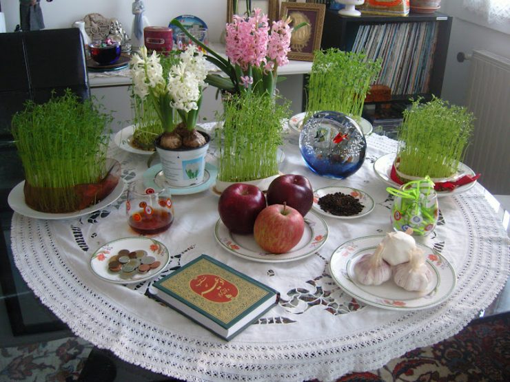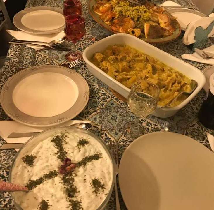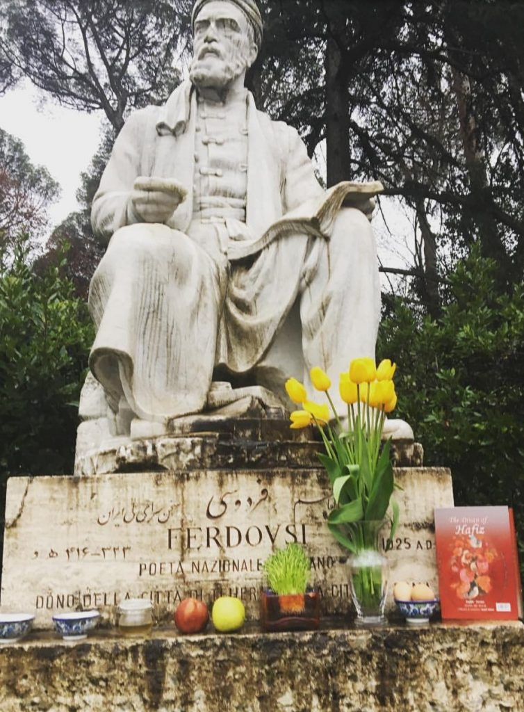 Sotto una pioggia battente, muniti di ombrelli ma anche di fiori e dell’imprescindibile libro di poesie di Hafez, alle 17.15 precise, nel momento esatto in cui il sole è entrato nella costellazione dell’Ariete, attraversando l’equatore, gli iraniani dell’associazione culturale italo iraniana, Alefba, “capitanati” dal decano Bijan, hanno festeggiato come ogni anno, l’avvento del Nowruz che coincide con l’equinozio di primavera, primo giorno del mese di Farvardin dell’ anno 1397del calendario persiano. Insieme a loro, altre 300 milioni di persone in Medio Oriente e nei paesi dell’Asia centrale e nelle repubbliche ex sovietiche, hanno brindato al nuovo anno che ha fatto il suo ingresso il 20 invece che il 21 marzo. Per 13 giorni consecutivi in Iran tutto si ferma:nel lungo periodo di vacanza le famiglie si riuniscono tornando ai villaggi di appartenenza, oppure chi se lo può permettere compie dei viaggi all’estero. La speranza degli amici di Alefba, che rappresentano gran parte della comunità iraniana, presente a Roma tra le 2 e le 3 mila persone, è che la festa più importante dell’Iran sia riconosciuta ufficialmente da Roma Capitale come da diversi anni fanno sia la Casa Bianca che Buckingham Palace. Gli intrepidi membri dell’asociazione Alefba a Villa BorgheseL’appuntamento di fronte alla monumentale statua del poeta persiano Ferdowsi nella piazza omonima a Villa Borghese, è ormai rituale, tanto più da quando il Nowruz è stato ufficialmente registrato nella lista UNESCO del Patrimonio Culturale Immateriale dell’Umanità nel 2010. E anche ieri i partecipanti si sono riuniti festosi nel piazzale per leggere le poesie di Hafez e brindare al capodanno persiano.La statua del famoso poeta persiano Ferdowsi a Villa BorghesePoi tutti a casa per cenare di fronte all’ Haft-Sin, il tavolo, simbolo del Nowruz dove sono disposti i sette oggetti che rappresentano salute, ricchezza, rinascita, pazienza e tolleranza. A Tehran l’Haft -Sin invade le vetrine di tutti i negozi,che fanno a gara a chi lo prepara più grande e fastoso a seconda dello spazio a disposizione, ma anche gli androni dei i palazzi e i corridoi delle metropolitane. La gente fa gli ultimi acquisti, magari dei pesci rossi che devono essere presenti immancabilmente nella loro boccia di vetro a significare la vita che scorre. Qui a Roma, naturalmente, l’Haft Sin si trova solo negli appartamenti di quanti, pur vivendo nella capitale, non rinunciano a celebrare una festa tanto importante, preparata nel mese precedente di esfand con attività volte al rinnovamento e alla celebrazione di un nuovo inizio: dall’acquisto di nuovi abiti, alla pulizia approfondita della casa che viene addobbata con fiori freschi, al rinnovo di piatti, bicchieri e porcellane, fino alla sostituzione o alla riparazione di tutti gli oggetti che si sono rotti nel corso dell’anno.La famiglia di Neda a casa di NicoleAbbiamo festeggiato il Nowruz a casa di Neda, una signora iraniana che vive e lavora a Tehran ma che nella capitale è venuta a trovare la figlia Nicole, felicemente sposata a un italiano, Danilo. Neda, che a Tehran ha lasciato l’altro figlio in compagnia di sua madre e degli altri parenti, ha voluto preparare la cena tipica del Nowruz: sabzi polo mahi, cio salmone con riso condito, tra le altre erbe, con il coriandolo fresco che lei e sua figlia hanno trovato solo nel mercato di piazza San Giovanni di Dio,zireh polo ba morgh, pollo con cumino, cipolla e una crosticina brunita di zafferano sulla sommità,morghe kari, sempre pollo, ma con il curry e la panna. Non poteva mancare per finire lo yogurt con cetriolo e pezzetti di aglio, simile allo zaziki e una sorta di croccante con pezzetti di pistacchio come dolce.I piatti tipici del NowruzTutti cibi buonissimi per l’occasione innaffiati di un ottimo vino bianco, visto che l’Iran è lontano con le sue interdizioni alimentari. Sullo sfondo l’haft sin addobbato secondo la tradizione: “sono tutti oggetti che iniziano con la lettera S – ci spiega Neda – che si dispongono intorno al libro di poesie di Hafez. Sabzeh, una pianta di grano come simbolo di verde, natura e rinascita; Samanu, un dolce budino a base di germe di grano che simboleggia il potere e il coraggio; Senjed, olive persiane secche che simboleggiano la saggezza; Seeb, mele per augurare la salute; Somaq le bacche tipo datteri che significano pazienza e tolleranza; Serkeh, l’aceto per l’azione disinfettante e la pulizia; Sir, l’aglio simbolo della medicina”.Oltre ai sette simboli “obbligatori”, alcuni aggiungono un cesto di uova dipinte, auspicio di fertilità ,una candela, che secondo il culto zoroastriano simboleggia la luce e il bene; uno specchio che riflette le immagini della Creazione.Ma esauriti i riti della tradizione, terminata la cena, ecco gli auguri e i brindisi, proprio come a capodanno, e finisce che Neda e Nicole, accompagnate da Danilo, con i genitori e i nipoti che battono le mani, improvvisano una vera e propria danza persiana sulle note della musica tradizionale iraniana.Nicole e Neda che in mano tiene una corteccia intagliata contro il malocchioIl 22 marzo alle 18.00 un ultimo appuntamento al Biocaffè letterario di via Ostiense dove si fondono insieme tutte le arti che accomunano 300 milioni di persone appartenenti a diverse etnie, che in comune hanno anche la celebrazione del Nowruz. Poesia, danza e musica dal vivo e la presentazione dell’abito della pace nell’ambito della sfilata di abiti tradizionali rielaborati in chiave contemporanea a cura della stilista curdo – iraniana Monireh Maleki.Leggi anche:Afshin e il Nowruz: tradizioni e speranze per il nuovo anno Preparandosi al NowruzPromuovere l’artigianato per i regali del Nowruz