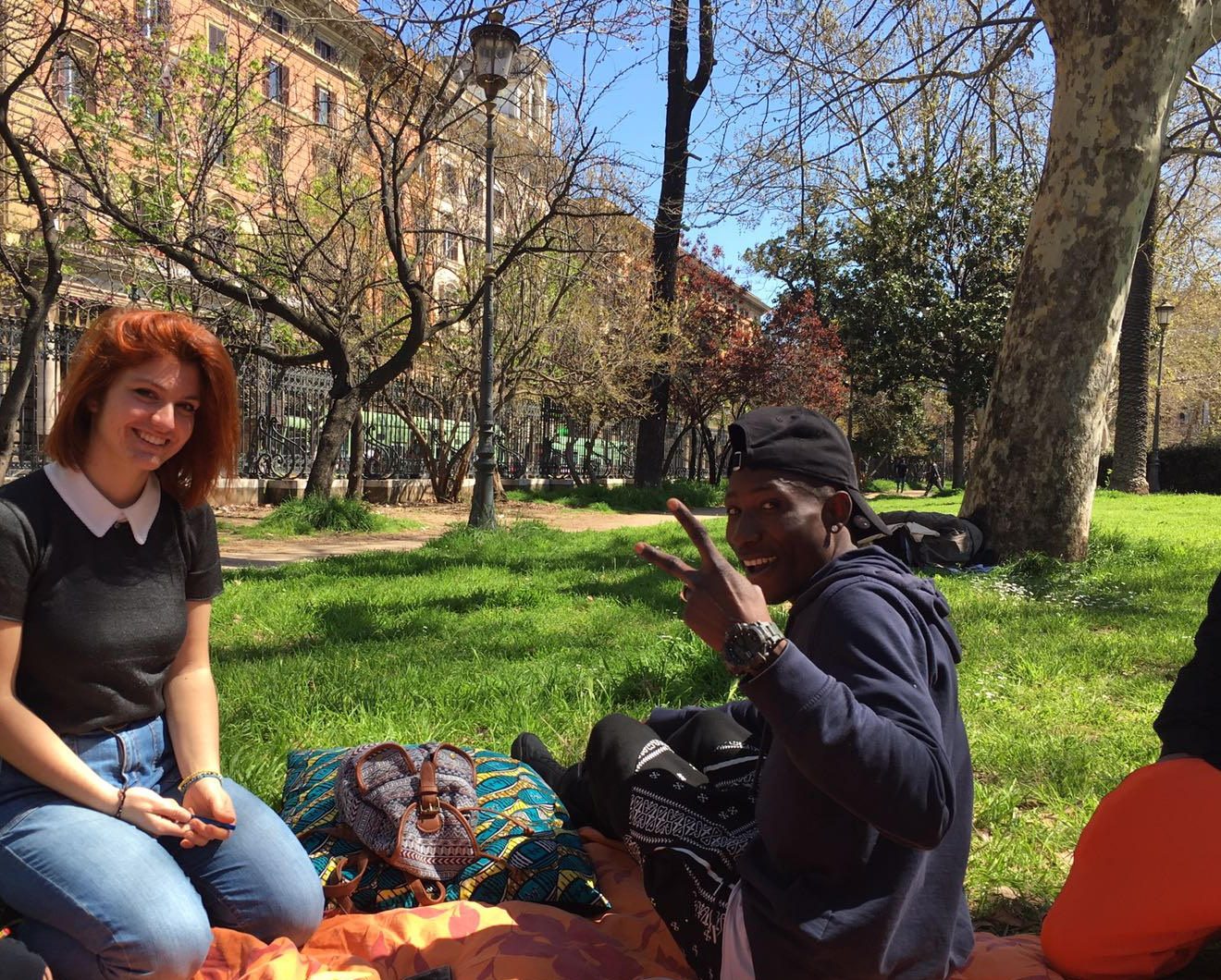 Bakary coi ragazzi di InfomigrantiLa capitale non è diventata nel tempo solo un luogo capace di accogliere molti stranieri che cercano una vita migliore, ma anche capace di comprendere le loro culture e farle conoscere agli altri.Guide invisibiliè uno dei tanti progetti che cerca di trasmettere attraverso i media l’impatto che le diverse culture hanno sulla storia moderna di Roma. Sono delle guide sonore che, attraverso un percorso audio costruito con le voci dei migranti che vivono a Roma, fanno scoprire ai partecipanti storie e luoghi nascosti.La specialità di queste guide sono le voci delle ragazze e dei ragazzi di diverse nazionalità che per nove mesi si sono impegnati a finalizzare questo progetto radiofonico sostenuto da Laboratorio 53: le loro voci presentano luoghi, tradizioni ed episodi di vita.Una delle voci che dà inizio all’audioguida di Piazza Vittorio è quella di Bakary Camara. Originario del Mali, Bakary ha 27 anni e vive da cinque mesi in un centro di accoglienza della Croce Rossa a via Ramazzini. Ha avuto una vita avventurosa sin da piccolo, infatti fino a tre anni fa, prima di arrivare in Italia, lui e la sua famiglia sono stati costretti a trasferirsi nel tempo in diverse zone dell’Africa, motivo per cui oggi non ha ricordi ben chiari sulla sua infanzia. La sua ambizione più grande è sempre quella stata di studiare, ma lì non aveva le condizioni necessarie per farlo.Così Bakary ha deciso di venire in Italia, imbarcandosi dalla Libia verso la Sicilia. “Sono nato da solo, quindi tutto quello che faccio, lo faccio da solo, anche venire qui”, sorride. Si è imbattuto in molte difficoltà una volta arrivato a Roma: ottenere il permesso di soggiorno, ambientarsi, e soprattutto trovare un posto di lavoro. Ha imparato l’italiano grazie ai corsi di lingua organizzati al laboratorio 53, dove coltiva le sue passioni come il teatro, la fotografia e la musica rap. L’amore per la recitazione è tale che Bakary ha anche partecipato a Io sono tempesta, film di Daniele Luchetti del 2018.“Nel mio villaggio, da piccolo, sentivo spesso parlare di Roma, come se fosse una città molto famosa, volevo proprio vederla” continua Bakary, ma non avrebbe mai creduto che sarebbe arrivato qui in circostanze simili. Fortunatamente, ha trovato l’appoggio di molte persone, volontari o altri rifugiati, che da allora lo spronano sempre a migliorare. Ha partecipato a vari corsi di formazione – come quello di cameriere o di scuola guida – nella speranza di trovare un buon lavoro. Infatti, dopo che avrà preso la patente, pianifica di fare un lungo viaggio per l’Europa e ritrovare i suoi vecchi amici che si sono stabiliti in altri paesi: Spagna, Francia o Ungheria. Forse, grazie alla sua grinta e il suo ottimismo, coglierà l’opportunità giusta per lui, e la sfrutterà al meglio.