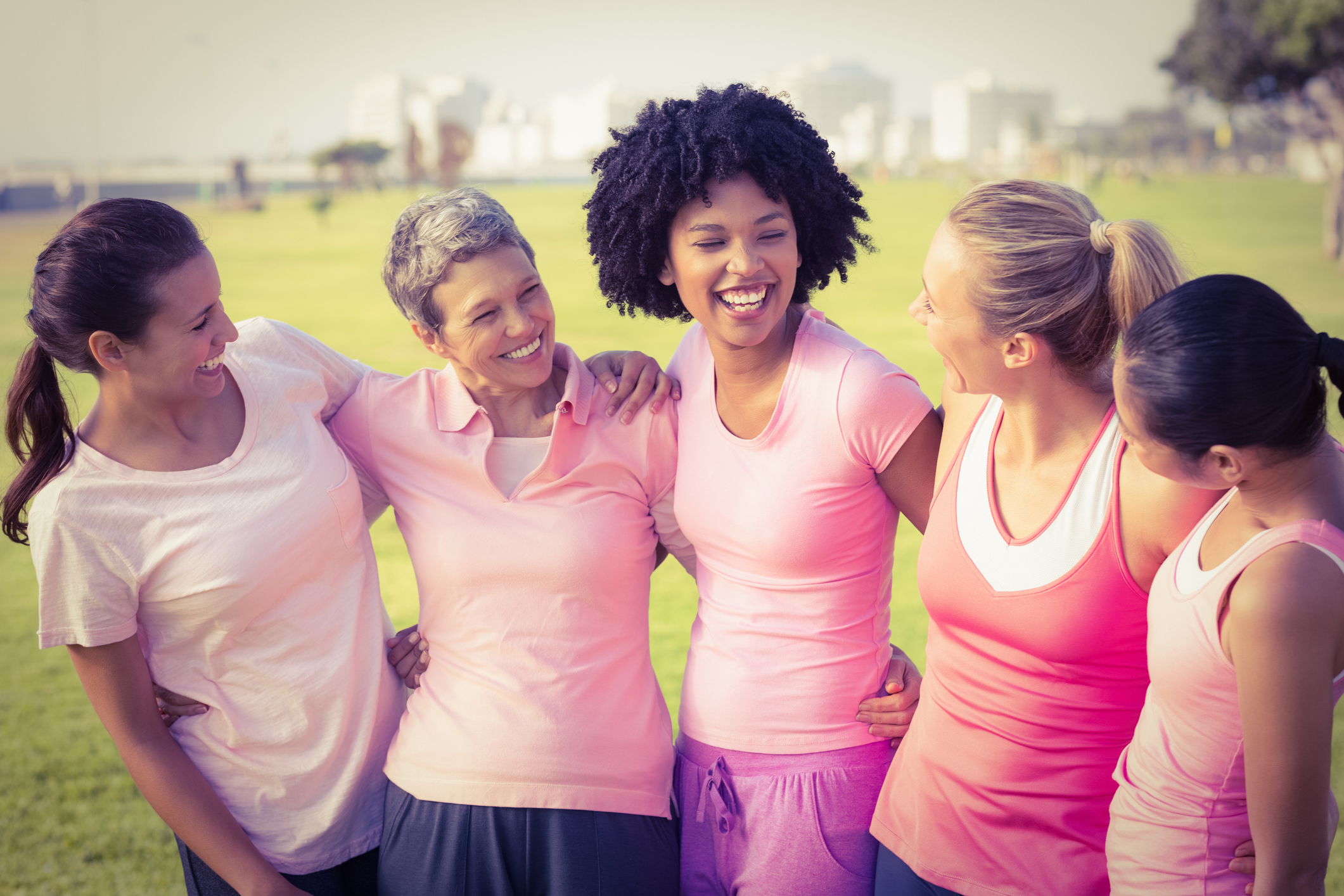 Home Prevenzione donna: segui i bollini rosa della Open Week Onda Laughing women wearing pink for breast cancer