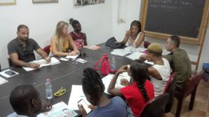 Sono le 16.00 di un venerdì di fine agosto. In via degli Artisti 32, a pochi passi da Piazza Barberini, le porte di Casa Africa sono già aperte per la lezione pomeridiana delle 16,30 e gli studenti, accolti dalla volontaria Francesca, sono già ai loro posti: scambiano battute, ripassano le lezioni precedenti e qualcuno dà lezione di wolof ai compagni.