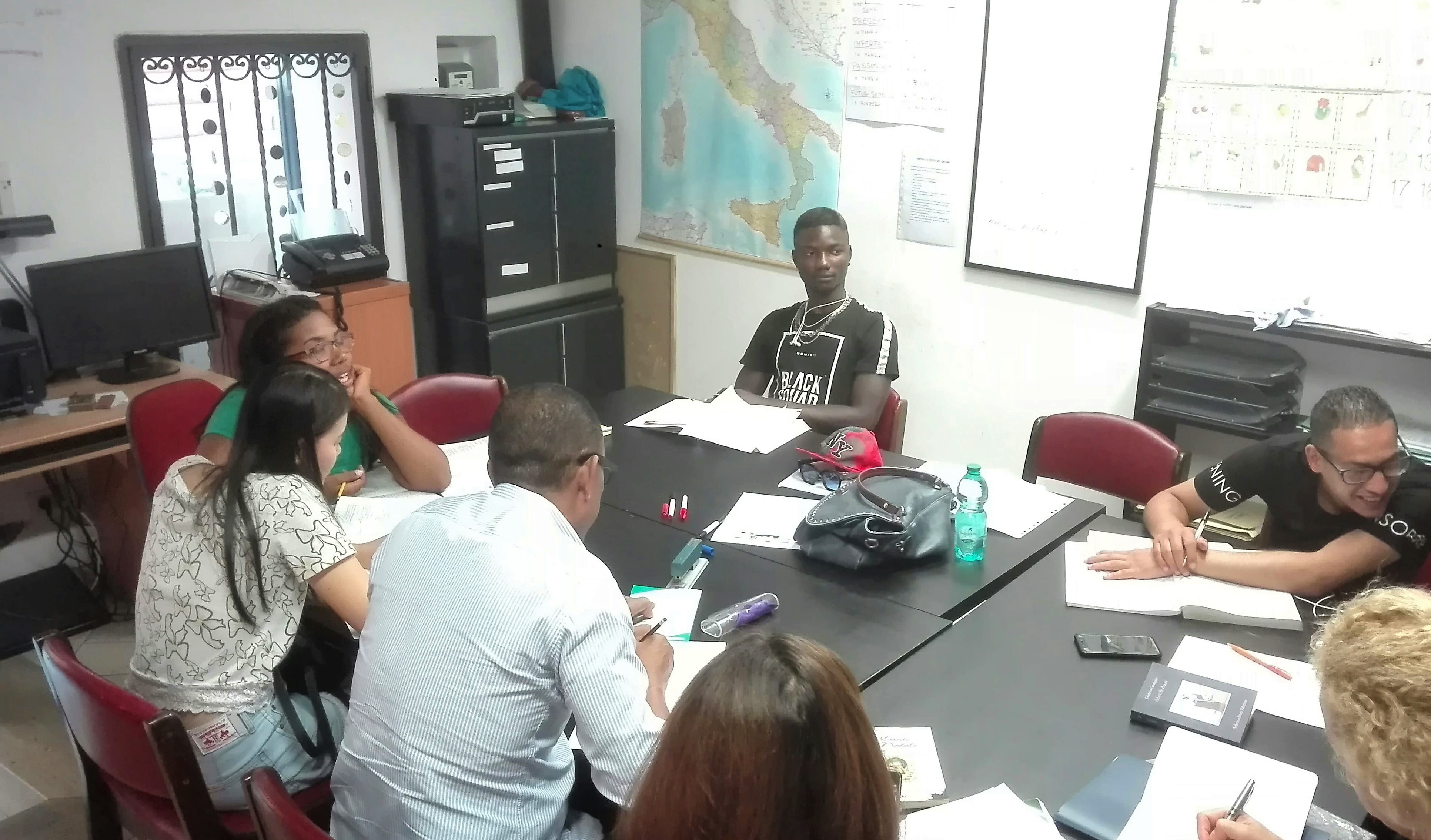 “L’affluenza in estate è costante: a volte arrivano anche più di trenta studenti, anche se la capienza massima dei locali è di trentacinque persone”, dice Francesca. Le due classi si riempiono presto, e basta dare un’occhiata alle schede di ogni studente per rendersi conto della varietà dei paesi di provenienza: Ucraina, Thailandia, Iraq, Libia, Nigeria, Marocco, Turchia, Guinea, Kenya, Sierra Leone, Brasile, Venezuela. Tutti in solo due stanze.