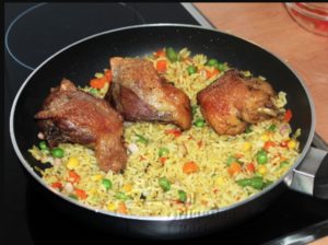 PreparazioneLessate del riso bianco e mettetelo da parte. In un’altra casseruola soffriggere la carne a cubetti, la verdura, le cipolle e le spezie. Prendere una casseruola ed aggiungere un po’ di olio. Unite una tazza circa di riso ed un po’ di condimento. Mescolare il tutto e ripetere l’operazione fino a che il riso fritto non sia pronto.
