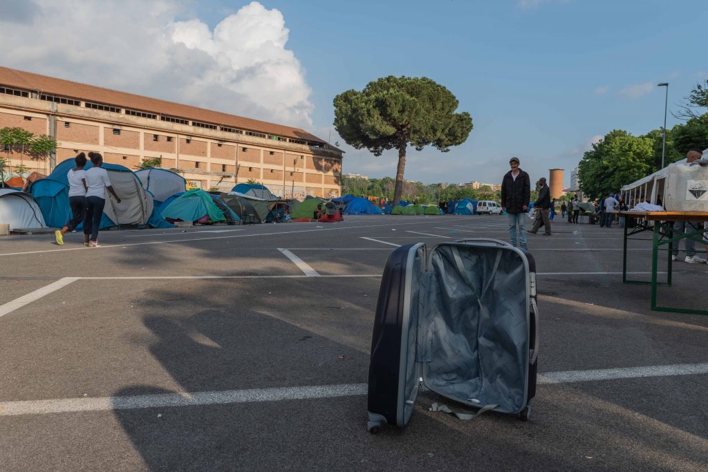 Foto di GMARiempire le taniche d’acqua, cucinare una tonnellata di cibo al mese, svolgere lezioni d’italiano e inglese, fornire assistenza sanitaria da inizio anno a oltre mille migranti transitanti e fargli conoscere Roma e i suoi monumenti sono solo alcune delle tante attività che un gruppo di cittadini volontari di Baobab experience svolge, ormai da tre anni, mentre le Istituzioni fanno continui scivoloni.Da poco più di un anno lo spiazzo asfaltato di Piazzale Maslax accoglie, alle spalle della stazione Tiburtina, circa trecento migranti in diversi alloggi: gazebo, tende e teloni, non c’è corrente elettrica, bagni, acqua e luce. Una situazione ignorata dalle istituzioni e sconosciuta alla maggioranza dei cittadini che domenica 16 settembre ,in occasione dell’evento “OpenDay BAOBAB, una città oltre la rete”, si sono avvicinati all’area di proprietà delle Ferrovie dello Stato, per conoscere l’esperienza di autogestione di Baobab e rispondere all’appello lanciato dall’associazione per reclutare nuovi volontari.“Abbiamo deciso di organizzare l’Open Day BAOBAB perché negli ultimi mesi siamo stati sotto attacco del nuovo Governo e vogliamo far capire cosa facciamo e come ogni cittadino può iniziare a far parte di questa esperienza”, spiega Andrea Costa, attivista di Baobab Experience.E così uno a uno e sotto il sole caldo di settembre, i referenti di ogni gruppo di volontari si presentano e a lanciano un appello a tutti i presenti. Si inizia dalla sezione legale gestita da Giovanna e strutturata non solo da volontari del Baobab ma anche da una rete di associazioni composta da “A buon diritto”, CIR e “Partito dei Radicali”. “La nostra realtà funziona proprio perché siamo sempre connessi in rete con tante organizzazioni. Negli ultimi due anni con la nostra presenza abbiamo garantito e fornito a tanti migranti l’informazione necessaria che gli ha consentito poi di proseguire il loro viaggio nella maniera più tutelata possibile.”A seguire è Betta che insieme al suo staff si occupa di fornire assistenza ai minori stranieri non accompagnati e di smistarli nei centri Intersos e Save the Children. “Purtroppo adesso queste strutture sono aperte soltanto di giorno quindi ci servirebbero persone disposte ad accompagnarli la sera ad altri centri di accoglienza,” spiega.E poi c’è Raffaella che gestisce i vestiti e cerca volontari disposti a dare una mano durante i weekend per distribuirli e raccoglierli. Michelle, invece, è la referente di Baobab4Job e con entusiasmo racconta la loro esperienza: “in poco più di un anno abbiamo redatto 150 curricula di migranti di cui 60 hanno trovato lavoro o una borsa di studio universitaria.”Fotografia di Matteo Nardone – Gruppo vestiti Raffaella BracaleIl gruppo dei pasti è gestito da Daniela e dal suo staff attraverso la pagina Facebook. “Abbiamo bisogno di circa una trentina di kili di cibo al giorno e tutti quelli che vogliono contribuire a cucinare o portare del cibo qui sono benvenuti, non è necessario essere uno chef o un cuoco esperto!”, precisa.Le attività ricreative e le visite guidate sono organizzate invece dallo staff di Fabiana. “In un certo senso è una fortuna vivere in una città bella come Roma. Portare i ragazzi a visitare musei, vedere monumenti e passeggiare per il centro serve a rompere la monotonia della loro vita qui.”Fotografia di Matteo Nardone – Gruppo corsi d italiano, Emanuela SpadaroEmanuela, invece, si occupa dei corsi d’italiano. “La cosa più difficile è stata fargli capire quanto sia importante la lingua per integrarsi in un nuovo paese e trovare lavoro. E’ un’esperienza molto particolare e non è necessario essere insegnante, l’importante è avere buona volontà!”.E dai corsi alla sanità con il gruppo di Sonia, “non sono i medici quelli che cerchiamo, ma qualcuno che ci aiuti ad accompagnare gli ospiti alle visite specialistiche.” Infine, Valerio e Luca presentano il gruppo che gestisce le attività sportive come il calcio, il basket e la podistica. “Lo sport è uno dei mezzi più efficaci e immediati per abbattere le barriere linguistiche e culturali. E’ anche una valvola di sfogo e spensieratezza per tutti i nostri ospiti,” e lancia un appello, “se avete voglia di sudare e darci una mano, siete le persone giuste!”Fotografia di Matteo Nardone – Gruppo Sport Valerio Bevacqua e Luca CarnevaleAll’improvviso l’attenzione di tutti i presenti si concentra su un piccolo furgone che fa il suo ingresso nel piazzale tra suoni di clacson e le urla dei migranti nelle loro diverse lingue. Sono i volontari internazionali di “No name kitchen”, un’associazione che come spiega Esteban, uno dei suoi componenti spagnoli, “è nata due anni fa e si occupa di fornire qualsiasi tipo di aiuto nei campi di migranti informali, dalla distribuzione del cibo e dell’acqua ai vestiti, alle attività ludiche ai corsi di lingua.“L’avventura della “No name kitchen” è iniziata a Belgrado un po’ per caso dove la situazione era ancora più complessa rispetto a quella del Baobab. “La notte c’era una temperatura di -25 gradi e spesso i migranti venivano maltrattati dalla polizia. Pian piano io e gli altri volontari che si trovavano lì abbiamo iniziato a fare gruppo e così è nata la “No name Kitchen”, un gruppo di volontari indipendenti che lavora grazie alle donazioni e si muove per l’Europa con un furgoncino che ci hanno regalato.“Belgrado, Serbia, Grecia e Italia sono per il momento le tappe del tour europeo della “No name kitchen” alle quali, tra qualche mese, bisognerà aggiungere anche le città di Ceuta e Melilla, in Spagna, “è il nostro prossimo obiettivo”, conclude Esteban.Intanto il Baobab è la loro priorità, soprattutto adesso che come spiega Roberto Viviani, attivista dell’associazione, “con l’arrivo del ministro dell’interno Matteo Salvini la situazione è peggiorata e da quando siamo a Piazza