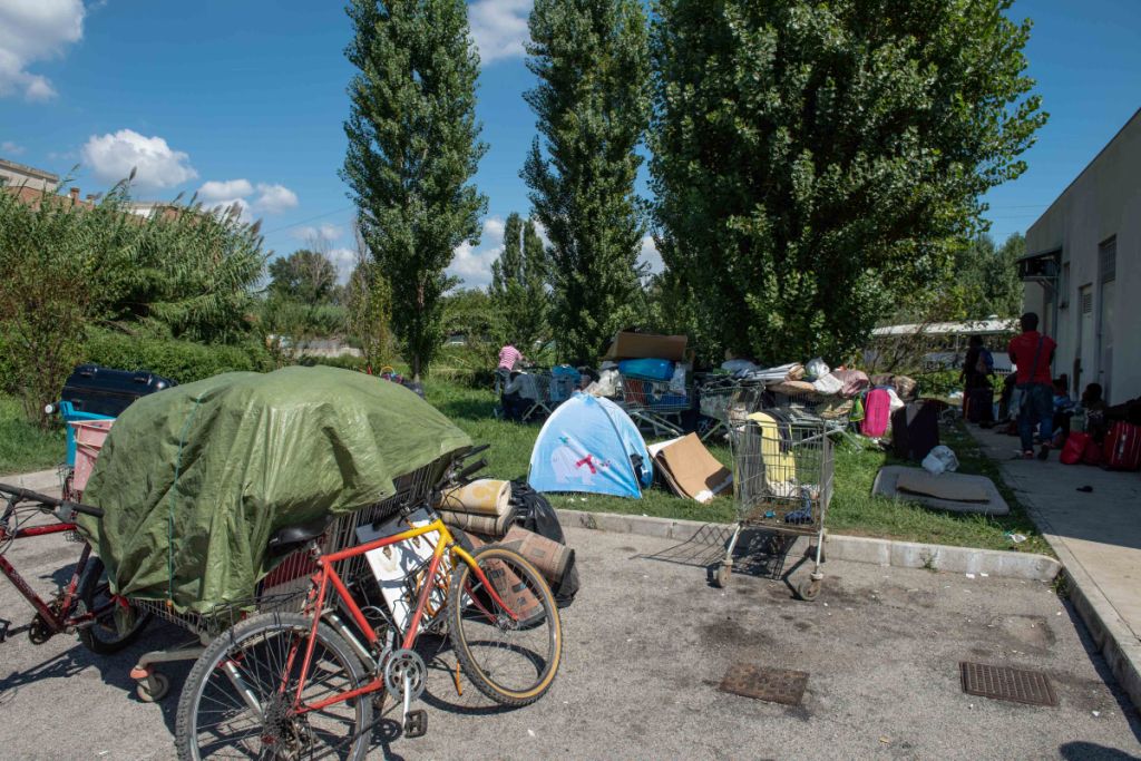 Su una collinetta di pochi metri, appena dopo l’uscita Tor Cervara dell’A24, una ventina di persone sono accampate accanto a una pompa di benzina. È il giorno dopo lo sgombero del palazzo in Via Raffaele Costi: venerdì 7 settembre la polizia è intervenuta perché circa 150 inquilini, perlopiù rom rumeni e africani da diversi paesi del continente, liberassero lo stabile. A Roma si contano circa 100 edifici occupati, e la palazzina di 4 piani nella periferia est della città era tra quelli più a rischio, soprattutto dopo la circolare emanata dal Ministero dell’Interno il primo settembre. Nel documento indirizzato alle prefetture si leggono indicazioni sugli interventi per prevenire le occupazioni, sgomberare gli edifici già occupati e censire chi ci abita.