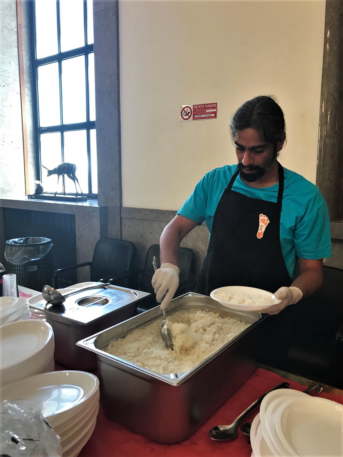 Arrivato a Roma riprende il lavoro di catering tornando alla sua formazione iniziale di chef. “Ho contattato anche Gustamundo proponendogli di fare delle cene ed è così che Pasquale mi ha parlato del progetto di “In Cammino…Carering Migrante”. ““Con il gruppo mi trovo molto bene: l’unico problema è la lingua, alcuni non parlano italiano o una lingua che conosco, così non è possibile comunicare allo stesso modo con tutti. Poi c’è la nostra vita prima di qui, la nostra storia. A volte ci toccano i problemi solo quando riguardano noi e quelli degli altri pensiamo non siano problemi. Non cerchiamo di capire come sta l’altro”.L’argomento si sposta sull’Italia, sulla delicata situazione che il Decreto Salvini sta creando e il clima crescente di intolleranza e diffidenza. Quello che più mi ferisce è l’uso della gente da parte della politica, ma anche vedere la facilità con cui le persone prendono tutto per vero quanto gli viene detto senza capire, senza conoscere a fondo. Questo è pericoloso! Stanno accadendo cose di cui tutta l’umanità deve aver vergogna, non solo gli italiani, eppure sembrano cose normali. Questo è solo l’inizio, non sappiamo quel che sarà domani.”