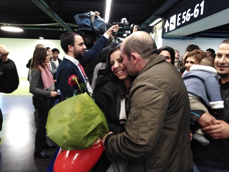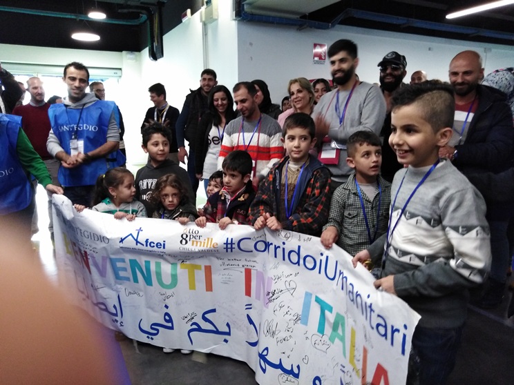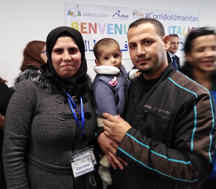 A vedere quei volti di bambini e genitori sorridenti che cantano in coro viva l’Italia, felici di essere “sbarcati” in tutta sicurezza nel nostro paese da un aereo, come persone civili e non animali ammucchiati su un barcone, sembra di assistere a un altro “film”.L’arrivo dei bambiniQuello che prevede un lieto fine per i settanta profughi siriani giunti oggi a Fiumicino attraverso l’ultimo corridoio umanitario promosso dalla Federazione delle chiese evangeliche in Italia (FCEI), insieme alla Comunità di Sant’Egidio e alla Tavola valdese, in accordo con i ministeri dell’Interno e degli Esteri del governo italiano.Dei 70 arrivati oggi, 50 verranno presi in carico dalle diaconie valdesi di Piemonte, Liguria e Lombardia, gli altri troveranno “casa” a cura della Comunità di S. Egidio a Roma e a Pisa nella canonica “ristrutturata” del parroco della chiesa di Santa Caterina di Alessandria, don Francesco, venuto ad accoglierli di persona.Rahim, Jamir e MustafaQuando giungo in aeroporto per attendere l’arrivo dei profughi che, ottenuta la protezione umanitaria, stanno sbrigando le ultime pratiche per il visto, vedo accanto a me un ragazzo e una ragazza con dei bellissimi fiori in mano. Sono Riham, e Jamir, insieme al terzo fratello Mustafa Ahmad, i quali non vedono l’ora di riabbracciare la mamma, Manal, e la sorella più piccola, Rim. La loro è una delle famiglie siriane che oggi si sono ricongiunte “per cominciare – secondo il benvenuto pronunciato dal presidente della Comunità di S. Egidio, Marco Impagliazzo – una nuova vita”, “Chi viene accolto oggi in Italia – ha detto Impagliazzo nella breve conferenza stampa che si è svolta, poi, in una sala dell’aeroporto di Fiumicino – rinasce come italiano”.Una coppia tradizionale con il bambino piccoloE in effetti la famiglia di Manal, sposa a 14 anni e mamma per la prima volta a 15, oggi appena trentanovenne, sembra avere le carte in regola per “rinascere”. Riham, la primogenita di 23 anni, riprenderà i suoi studi di economia all’università, Jamir (il bello) rapper e chitarrista, farà qualsiasi lavoretto in attesa di trovare la strada giusta per diventare un vero “artista”, Mustafa che in Siria consegnava pacchi in scooter, non faticherà probabilmente a trovare un altro impiego. Rim la figlia più piccola che di anni ne ha 18 e che è sorda da quando aveva 9 mesi, in seguito, pare, a una diagnosi sbagliata ricevuta in ospedale, forse potrà riuscire a curarsi. “Siamo felici non riesco a spiegare a parole quello che sento” dice Manal tradotta da un mediatore culturale di S. Egidio – mentre è attorniata da un nugolo di giornalisti. Non vede l’ora di andare “a casa”, in quell’appartamento messo a disposizione dalla Comunità a Trastevere, dove i figli più grandi già vivono da qualche tempo e dove potrà cominciare a “riprendersi la vita” – come dice Christiane Groeben, vice presidente della Federazione delle chiese evangeliche in Italia (FCEI) dando il suo saluto.Ad attendere i nuovi arrivati anche Mahfoud, 24 anni, ingegnere meccanico. Arrivato in Italia con un corridoio umanitario da un anno e mezzo, Mahfoud lavora alla reception di un albergo a Fontana di trevi parla inglese, italiano, spagnolo e arabo classico, imparato dalla mamma, maestra di scuola.Mhafoud con uno dei bimbi neo arrivati“In Siria ho perso il 70 per cento degli amici e dei parenti, morti andando a fare la spesa, come mia nonna, o a scuola come i miei cugini di 4 e 9 anni”. In Italia è arrivato da solo dopo essere entrato in contatto con la Comunità di S. Egidio in Libano, dove aveva provato in un primo tempo a lavorare. “Ma per i siriani in Libano non c’è più posto – mi dice – ora qui mi trovo bene. Mi sono iscritto anche all’università per diventare mediatore culturale”.Naief che fa il pizzaiolo ad Avezzano abbraccia sua moglie che lo ha raggiunto Uno strumento quello dei corridoi umanitari, interamente autofinanziato che dal 2016 ad oggi ha permesso lo “sbarco” in sicurezza di 1500 profughi. A questi si devono aggiungere quelli accolti da Francia, Belgio e Andorra che hanno seguito il modello italiano, facendo registrare un numero complessivo di 2200 arrivi. Ed è ancora la signora Groeben nel suo breve intervento a chiedere all’Europa “l’apertura di nuovi corridoi”. Peccato che il governo italiano appaia intenzionato a muoversi in altra direzione. Il ministro Salvini ha, infatti, annunciato in questi giorni la mancata presenza del nostro paese alla riunione del prossimo 10 e 11 dicembre a Marrakech in Marocco, dove i paesi europei sono stati invitati per sottoscrivere il Global Compact for Migration un documento dell’Onu che incoraggia gli stati a collaborare reciprocamente e ad aprire vie legali per l’immigrazione. “Se ne occuperà il Parlamento” – ha detto il ministro dell’Interno – ma senza accennare a quando e se questo succederà.Il gruppo degli operatori in una foto ricordoRichiesto di un parere in proposito, Impagliazzo lancia un appello al Parlamento italiano: ”aspetteremo il pronunciamento del Parlamento – dice – ma dopo esserci tanto lamentati di essere stati lasciati soli dall’Europa, dovremmo partecipare agli incontri con gli altri paesi europei perché da soli non si va da nessuna parte. Abbiamo bisogno degli altri. Faccio appello al Parlamento italiano – conclude – perché si sbrighi a pronunciarsi”.