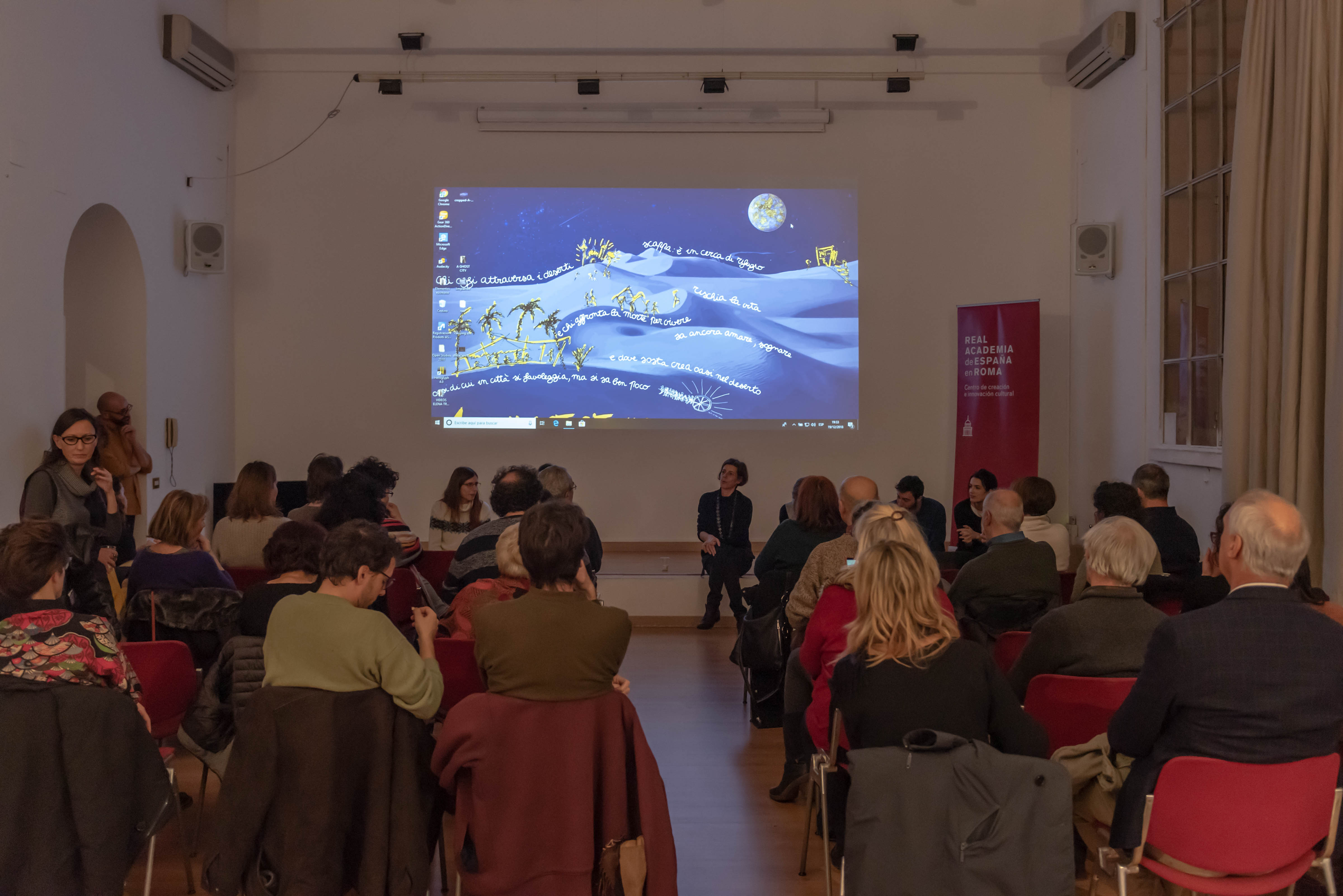 La serata all’Academia Real de España ha stuzzicato la curiosità di chi ha percorso le tappe solo nelle immagini proiettate e ha anticipato la voglia estiva di camminare nella notte.