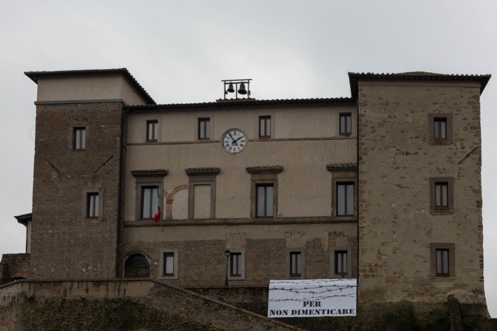 In questa domenica di fine gennaio il centro è immerso nel silenzio: del rumore dei giorni precedenti restano le bandiere delle associazioni che hanno portato supoorto, qualche transenna e una tenda con vestiti e coperte che sono stati donati a chi è partito per città più fredde. L’area è in uno spazio sospeso di periferia: dalla località Pontestorto si arriva al centro storico di Castelnuovo di Porto seguendo una strada di 8 chilometri, non facile da percorrere a piedi.