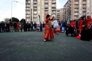 I festeggiamenti hanno preso vita nel primo pomeriggio quando i partecipanti si sono spostati verso l’area verde per mangiare. Le pietanze scelte e offerte gratuitamente a chiunque volesse festeggiare, partivano dall’immancabile Biryani riso basmati e pollo insaporiti da una particolare crema speziata piccante, la ricetta prevede che ogni pietanza venga cucinata e servita separatamente. Bengalesi e non hanno consumato il pasto servendosi, secondo la tradizione, con le mani. Il pranzo è stato un piacevole momento di interazione.Nel verde del giardino spiccava il tradizionale vestito rosso indossato dalle donne, il Sari: un abito dalle origini antichissime costituito da una unica fascia di stoffa, di lunghezza variabile, che viene avvolto intorno al corpo e non necessita di cuciture o bottoni. Impreziosito da ricami dorati o da gemme luminose, il colore prevalente è stato il rosso. Alcune ragazze hanno optato per l’arancio, altre per il verde acqua “per distinguersi ed essere riconoscibili”. Diverse donne portavano corone di fiori sul capo, bracciali e l’immancabile bindi. Anche gli uomini indossavano vestiti eleganti come vuole la trazione vuole: lunghe tuniche (kurta) o semplicemente una camicia.Dopo il pranzo, i festeggiamenti sono proseguiti con l’esibizione di alcune giovani danzatrici: bambine di tutte le età hanno sfoggiato i loro migliori passi di danza scanditi dal suono dei campanelli di un particolare accessorio musicale: il ghungroo ossia una cavigliera di stoffa interamente coperta da piccoli campanelli.Un altro importante momento ha visto Bachcu Dhuumacatu, pilastro dell’Associazione Dhuumacatu, annunciare e spiegare il Decreto Flussi.Erano presenti molte famiglie provenienti da stati diversi e di età e religioni differenti. La partecipazione di un così ampio spaccato generazionale ha messo in luce come ognuno abbia vissuto e percepito diversamente la festa. I più giovani, che non hanno mai avuto modo di celebrare il Capodanno nella terra d’origine perché nati in Italia, hanno accolto la tradizione emulando i più grandi che invece hanno cercato di ricreare in Italia una circostanza quanto più simile a quella originale. Il risultato è stato una sensazionale e coinvolgente celebrazione dal sapore orientale.